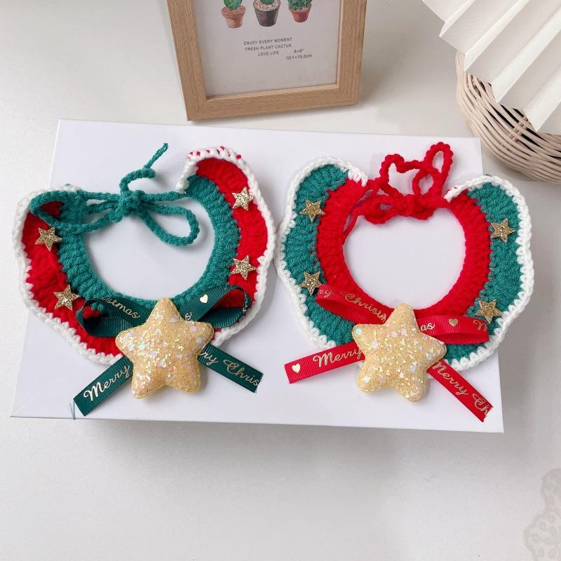 Bufanda navideña para gato, bufanda para perro, toalla para saliva, collar de lana para mascota perro pequeño, accesorios tejidos a mano