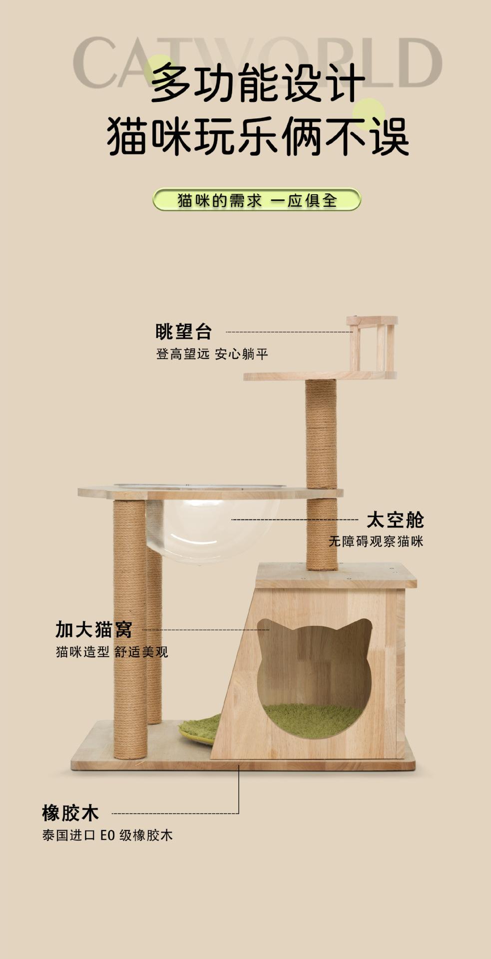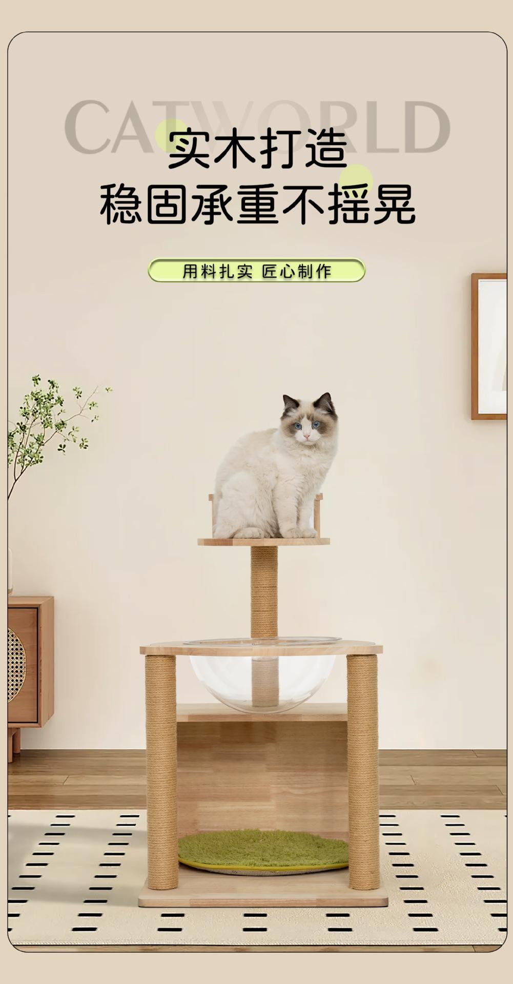 Marco de Escalada para Gatos de Madera Maciza, Nido Especial para Gatos Grandes, Árbol para Gatos Integrado Cápsula Grande Espacio Interior Universal para las Cuatro Estaciones Estante para Gatos