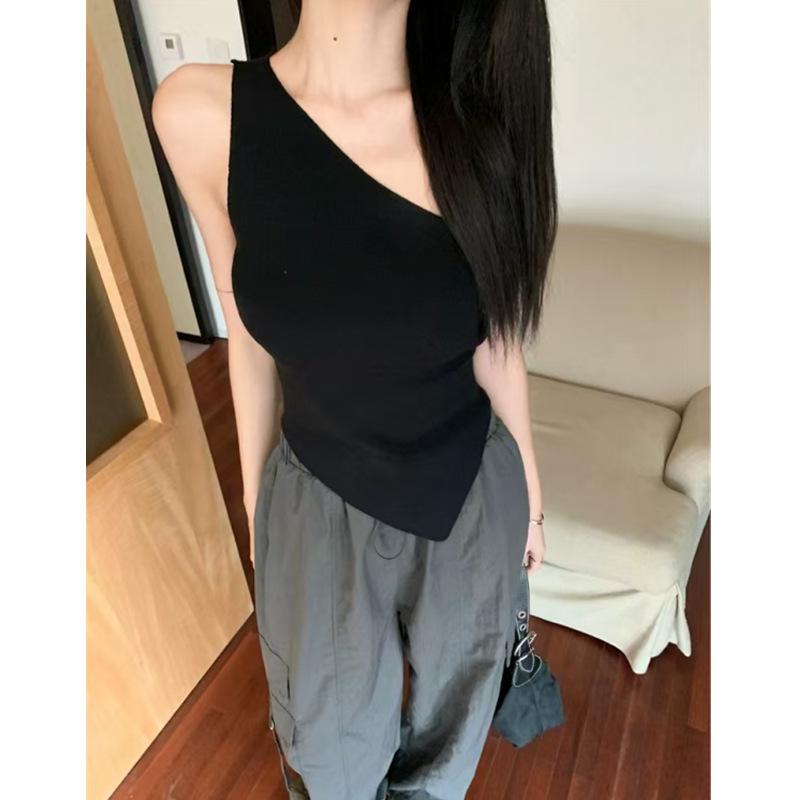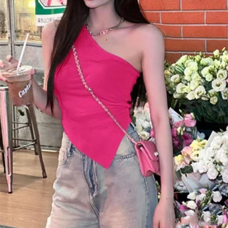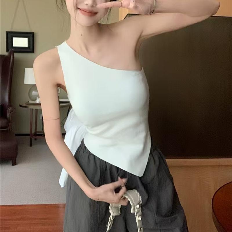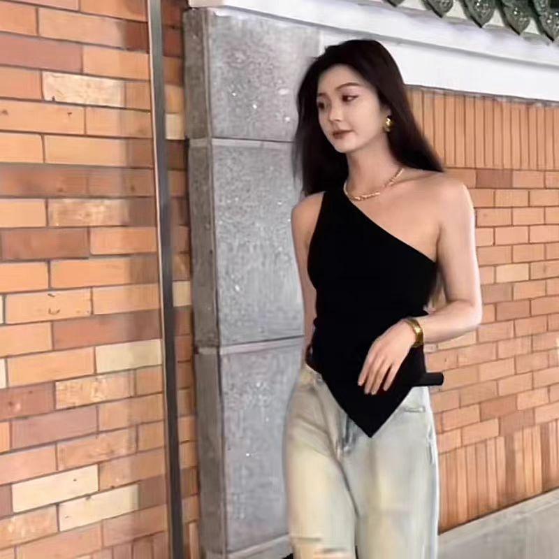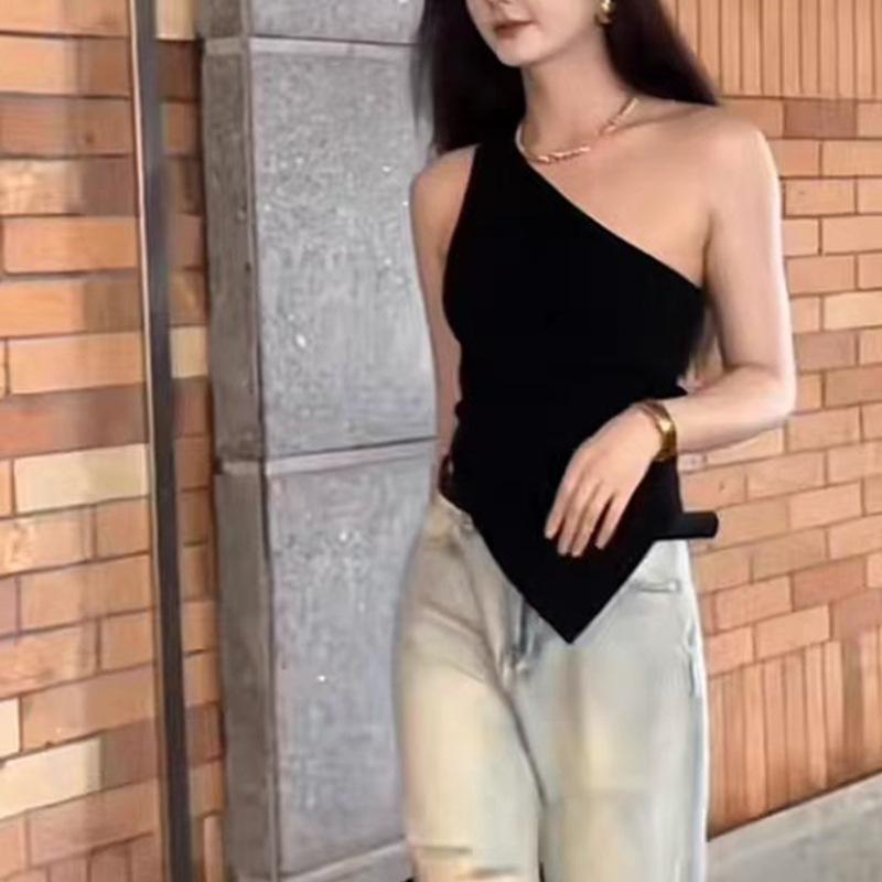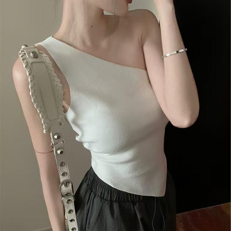 Camisola de punto con hombros descubiertos y diseño elegante para mujer, nueva prenda interior y exterior de verano de corte entallado.
