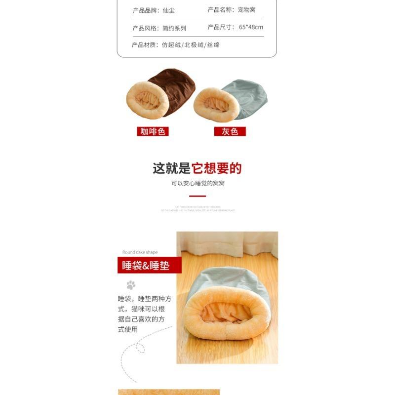 Cat sleeping bag closed removable and washable