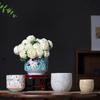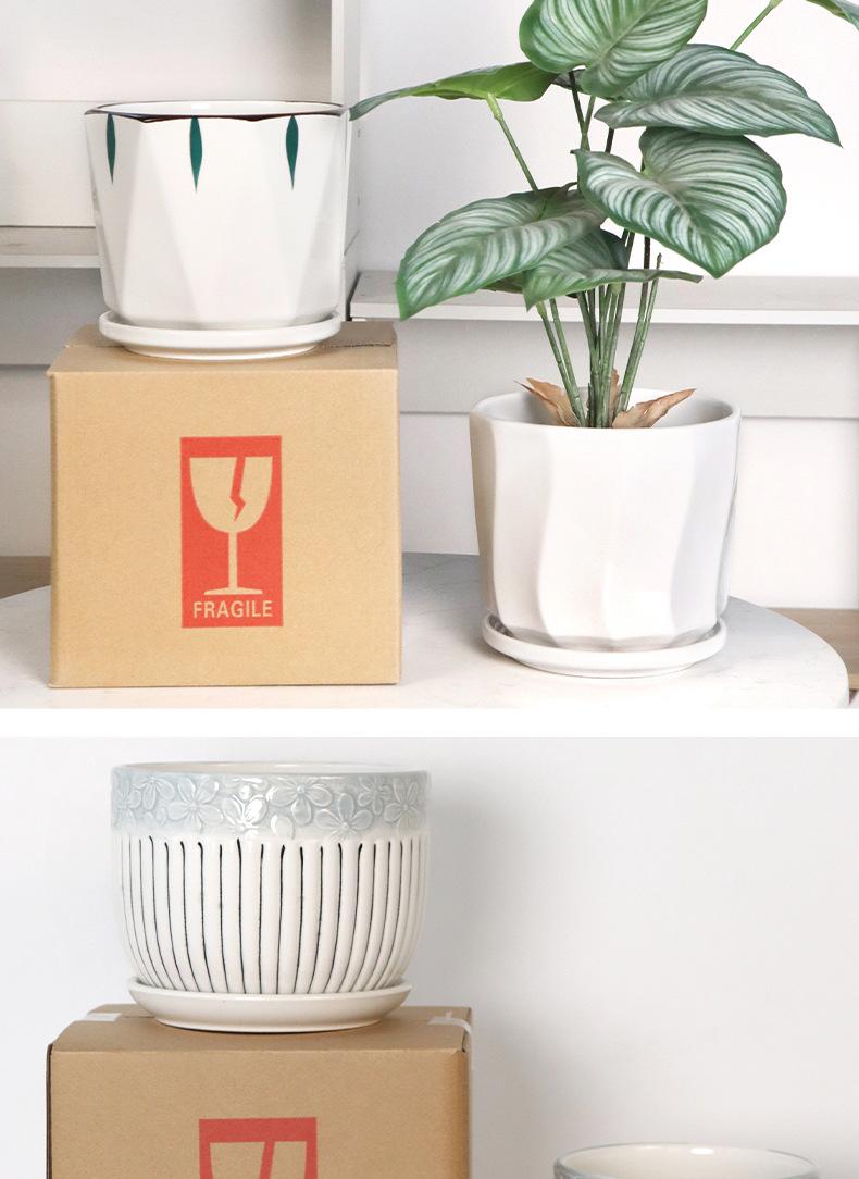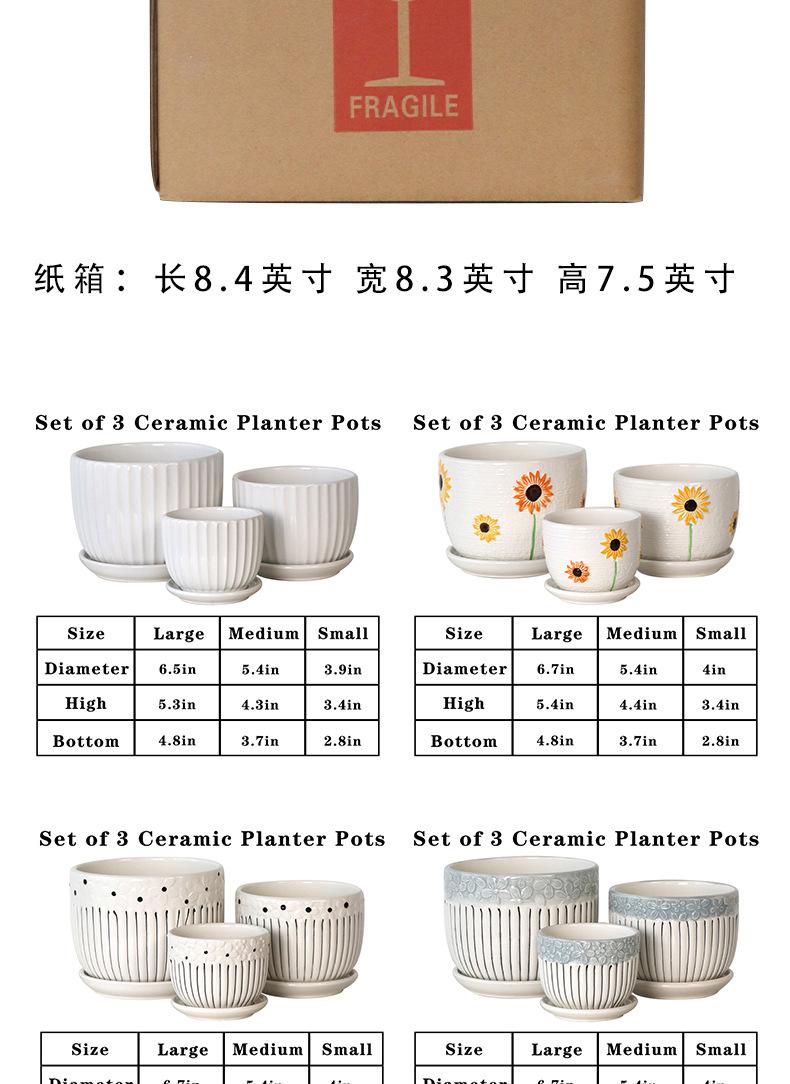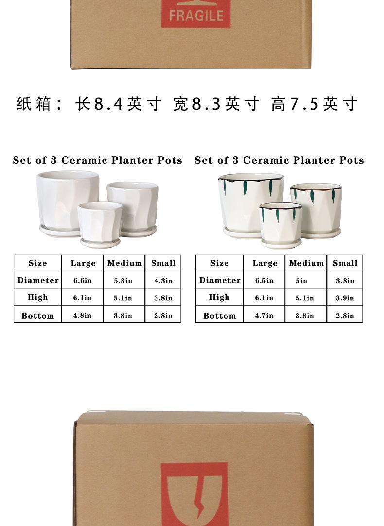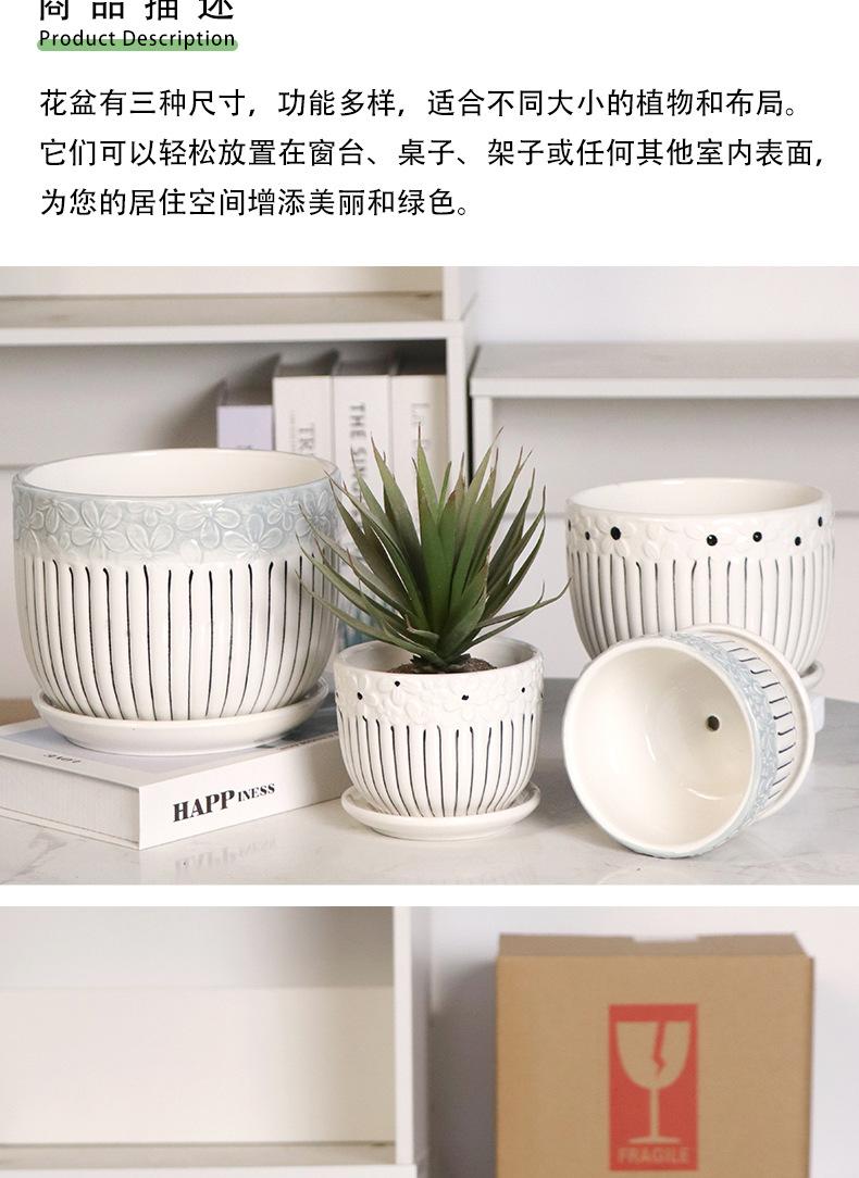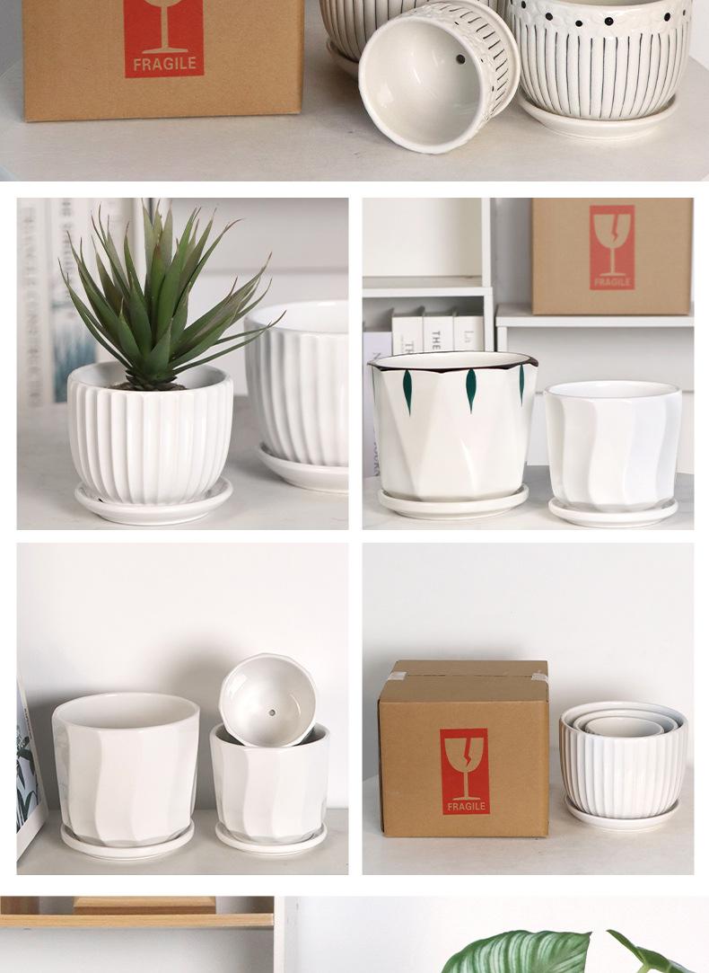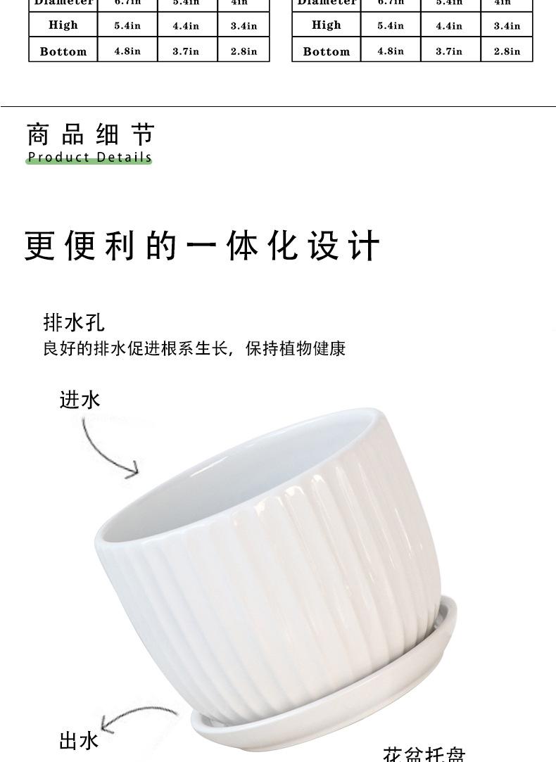 Maceta Juego de Cerámica Tres Blancas Simples Rayadas Maceta de Escritorio para Interior Plantas Maceta Contenedor Especial Transfronterizo Amazon