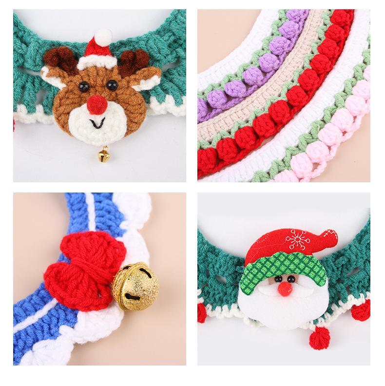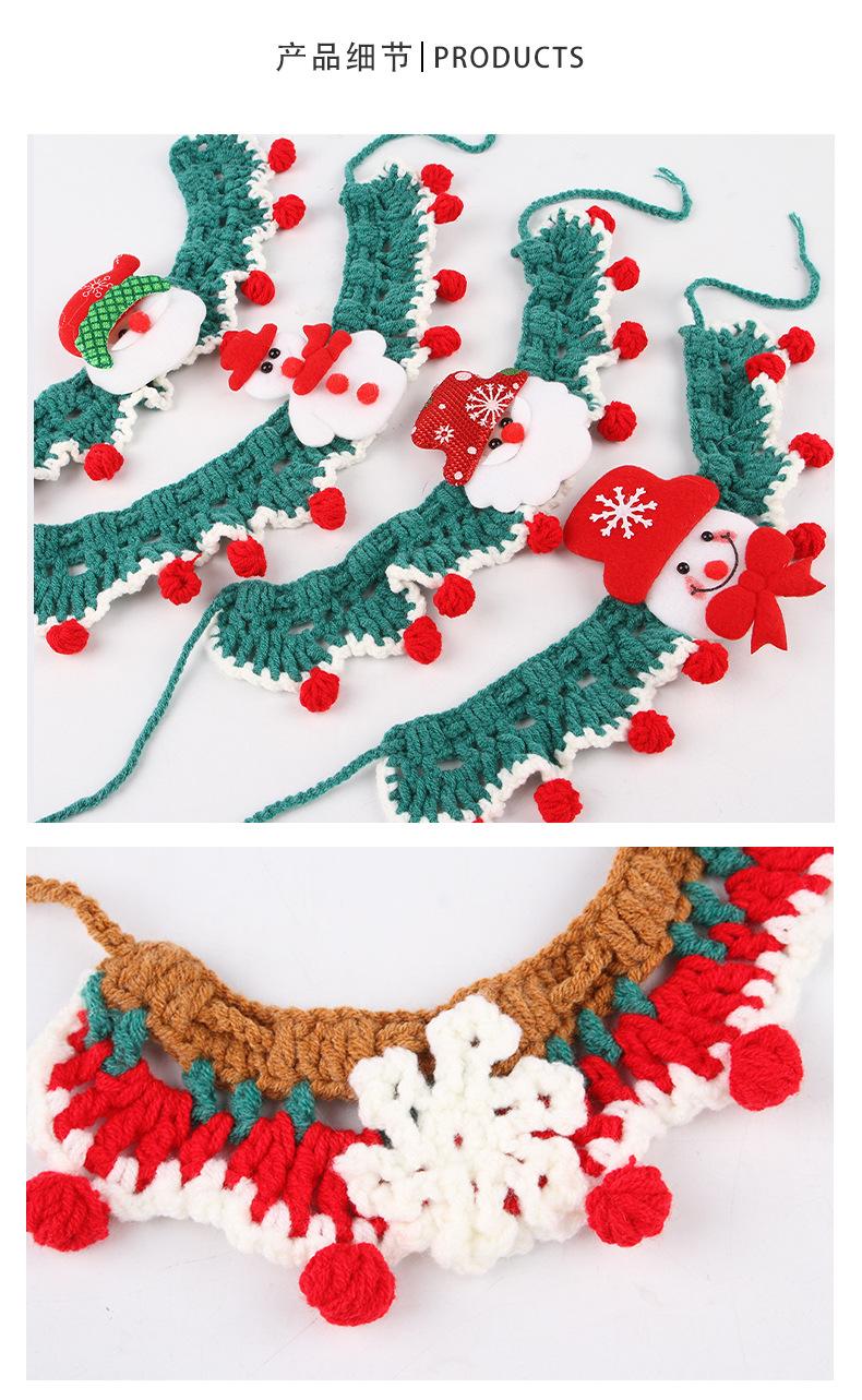 Resumen 2024 Serie Navideña de Mascotas Transfronteriza Nueva Bufanda Tejida a Mano Collar para Mascotas Decoraciones para Mascotas