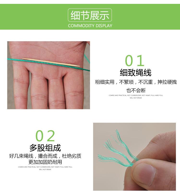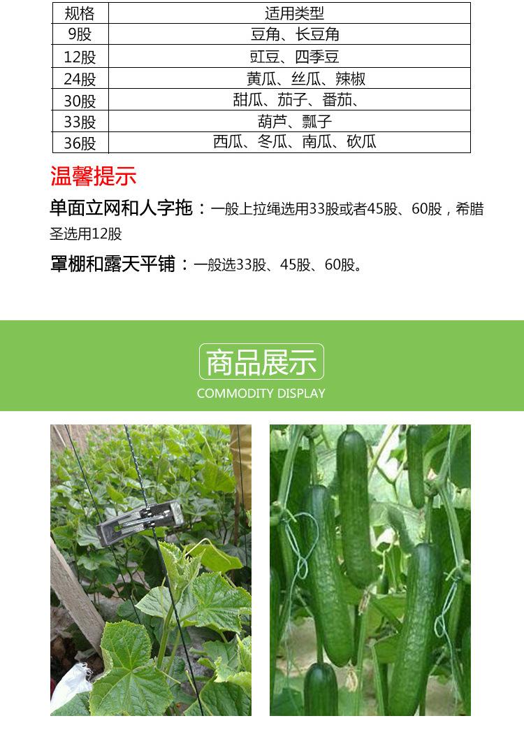 36 strands [cucumber and tomato] about 550 meters, 33 strands [climbing net pull rope] about 600 meters, 12 st...