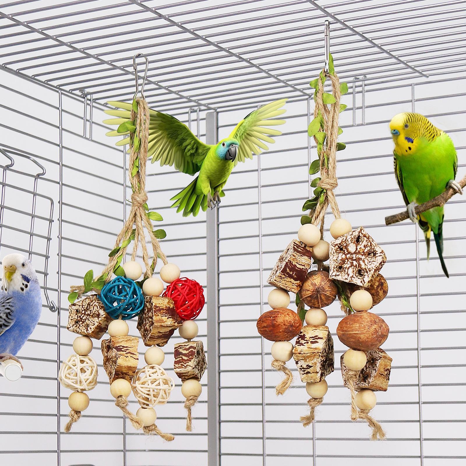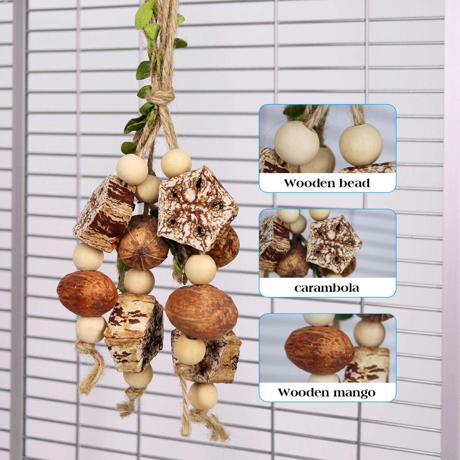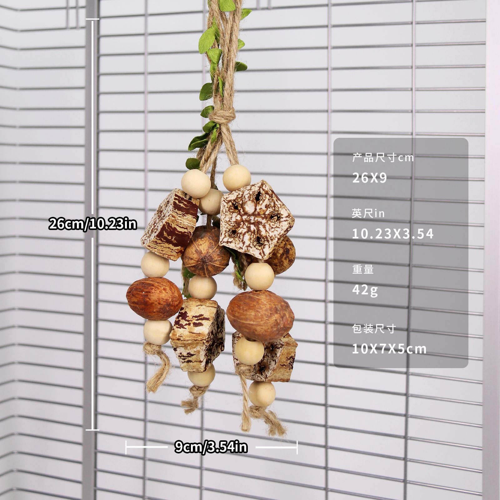 Juguete para loro columpio de fruta natural piel de tigre peonía xuanfeng para masticar carambola pino vid de maíz bola juguete para pájaro