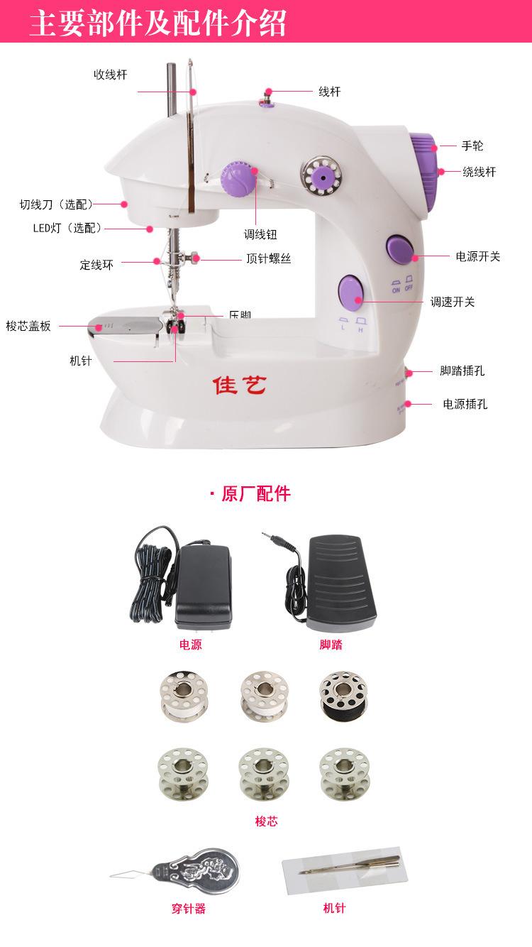 Accesorios: unidad principal, fuente de alimentación, pedal, 6 bobinas, 1 aguja de repuesto, 1 enhebrador. (Los demás artículos del paquete de Taobao deben adquirirse por separado).