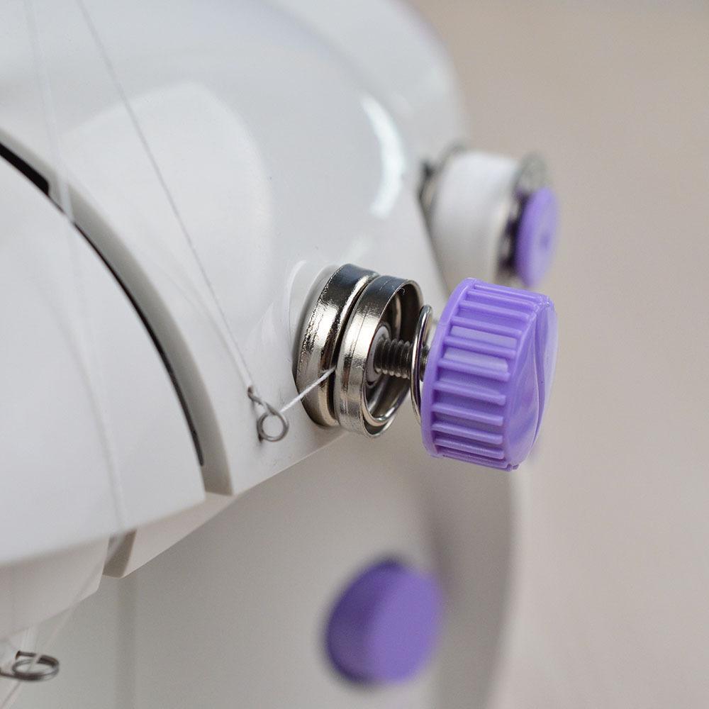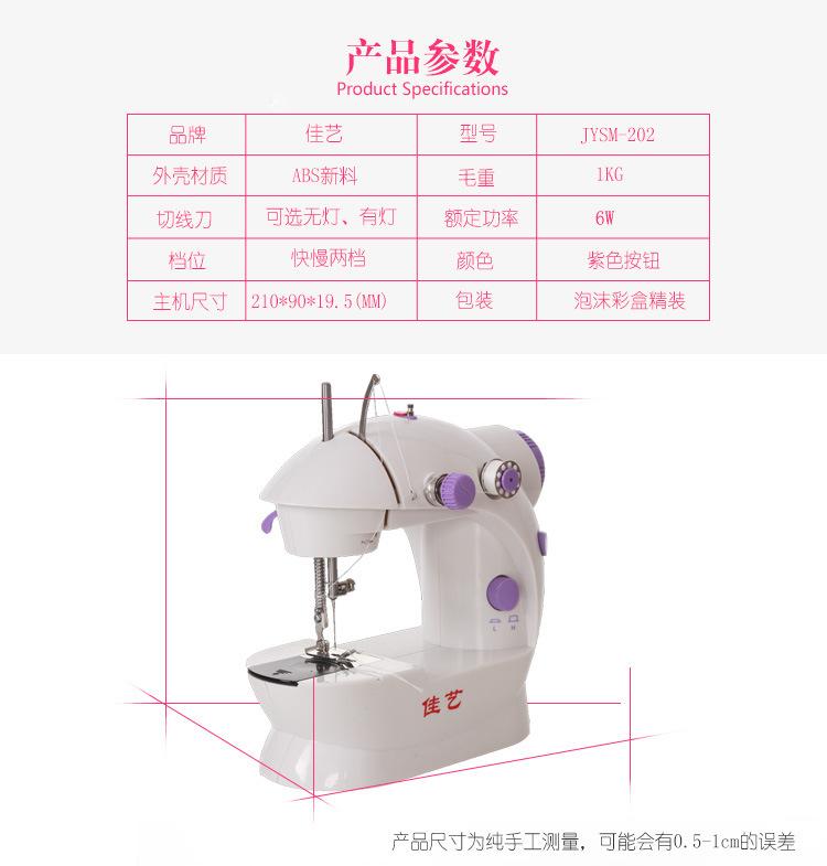 Funciones del producto: 1. Costura con doble hilo. 2. Velocidades duales, rápida y lenta. 3. Funciona con corriente o batería (no se pueden usar simultáneamente). 4. Se inicia con interruptor o pedal. 5. Incluye luz nocturna y cortador de hilo. 6. Puede enrollar el hilo en la bobina usted mismo. 7. El botón de ajuste del hilo permite ajustar la tensión.