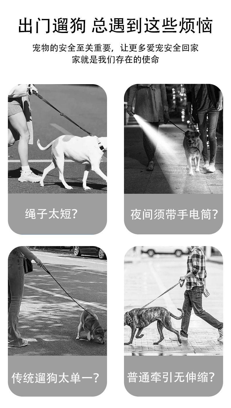 Correa multifuncional para perros transfronteriza retráctil automática retráctil para mascotas iluminación LED cadena para perros artefacto para pasear perros