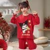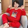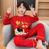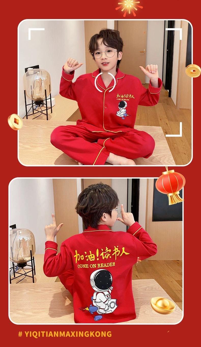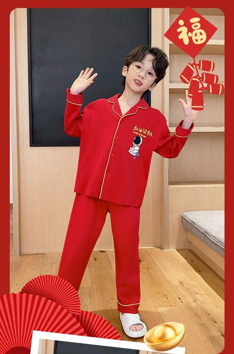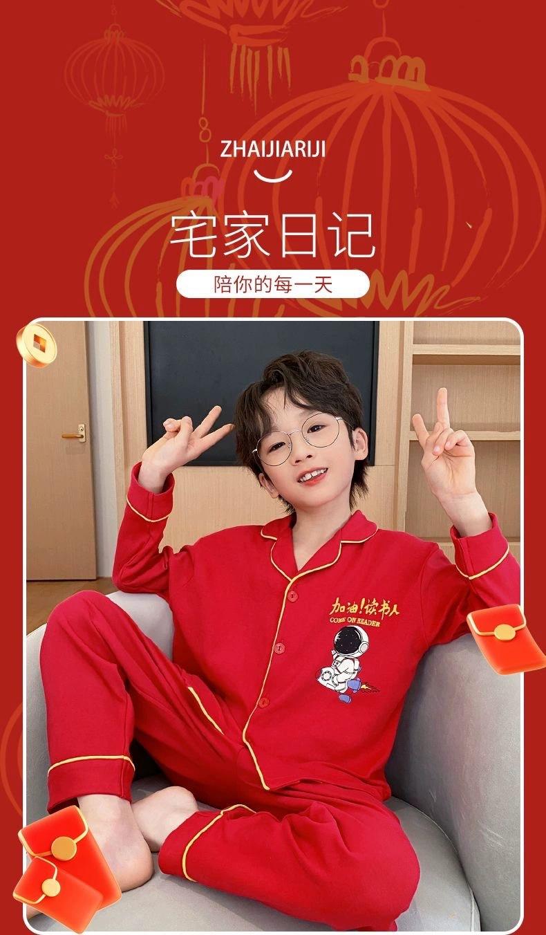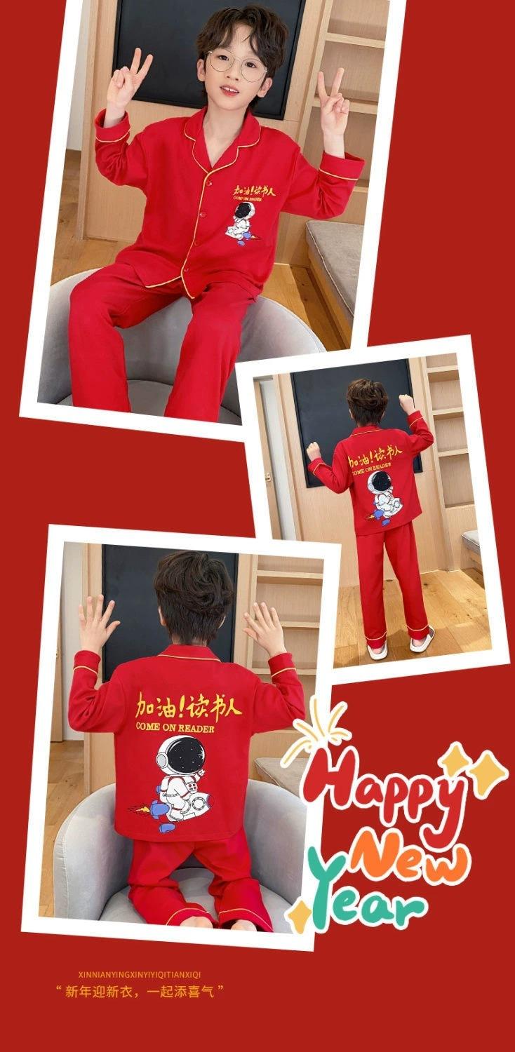 Pijamas de comercio exterior para padres e hijos, de algodón de imitación, de manga larga, para niñas, color rojo, para estudiantes de secundaria y primaria, ropa de moda para el hogar.