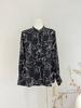Camisa de Seda para Mujer 2026 Primavera/Verano Nuevo Estilo Cuello Alto Crepé Doble Estampado 100% Seda de Morera Top