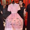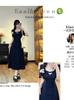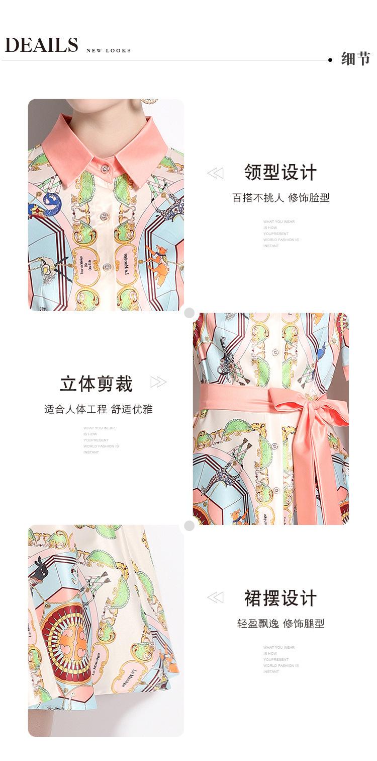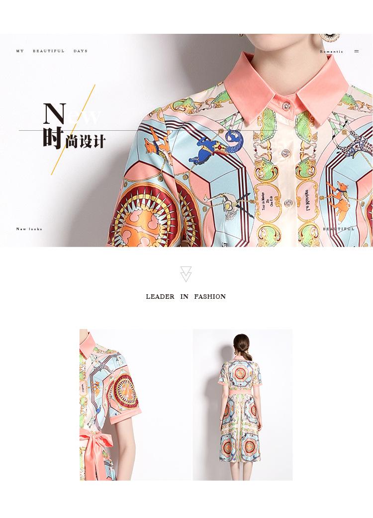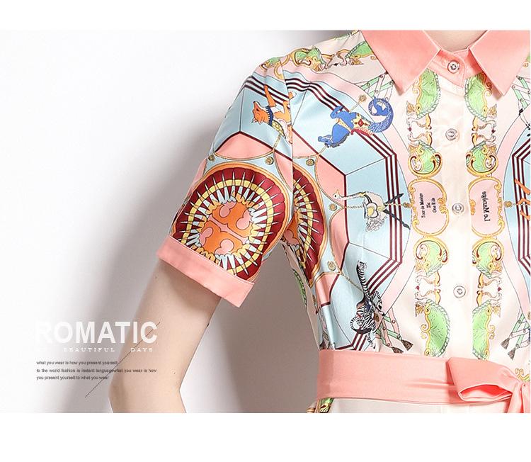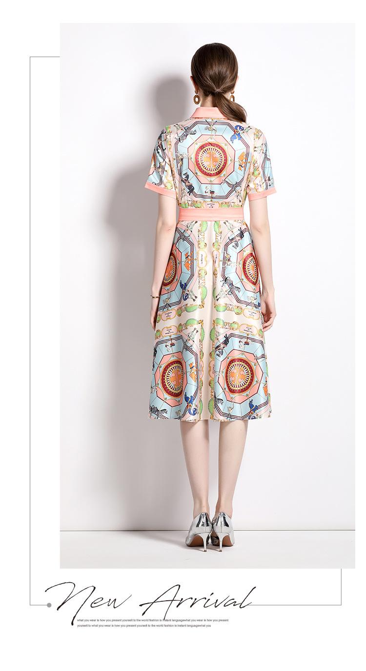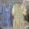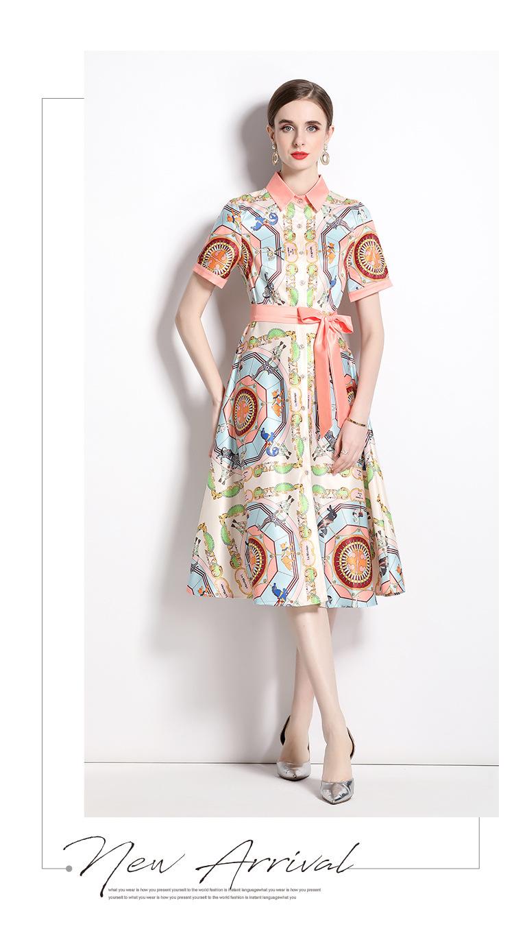 Vestido con cuello de cordones 2023 Estampado Manga corta Francés Manga corta De hadas Joven Cintura adelgazante Falda midi