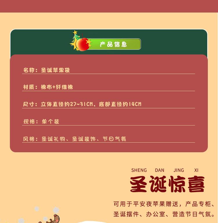 Bolsa de Manzana de Regalo de Navidad Bolsa de Regalo de Navidad Caja de Papel para Empaque de Manzanas Nochebuena Bolsa de Dulces de Frutas de Navidad