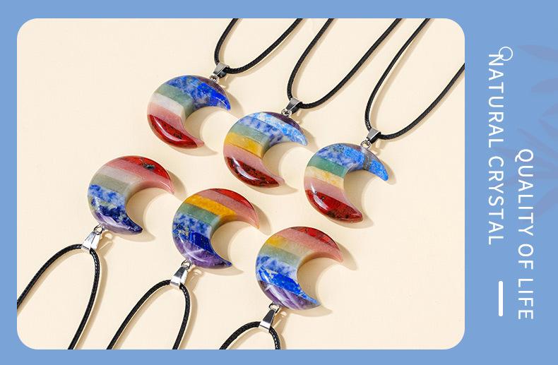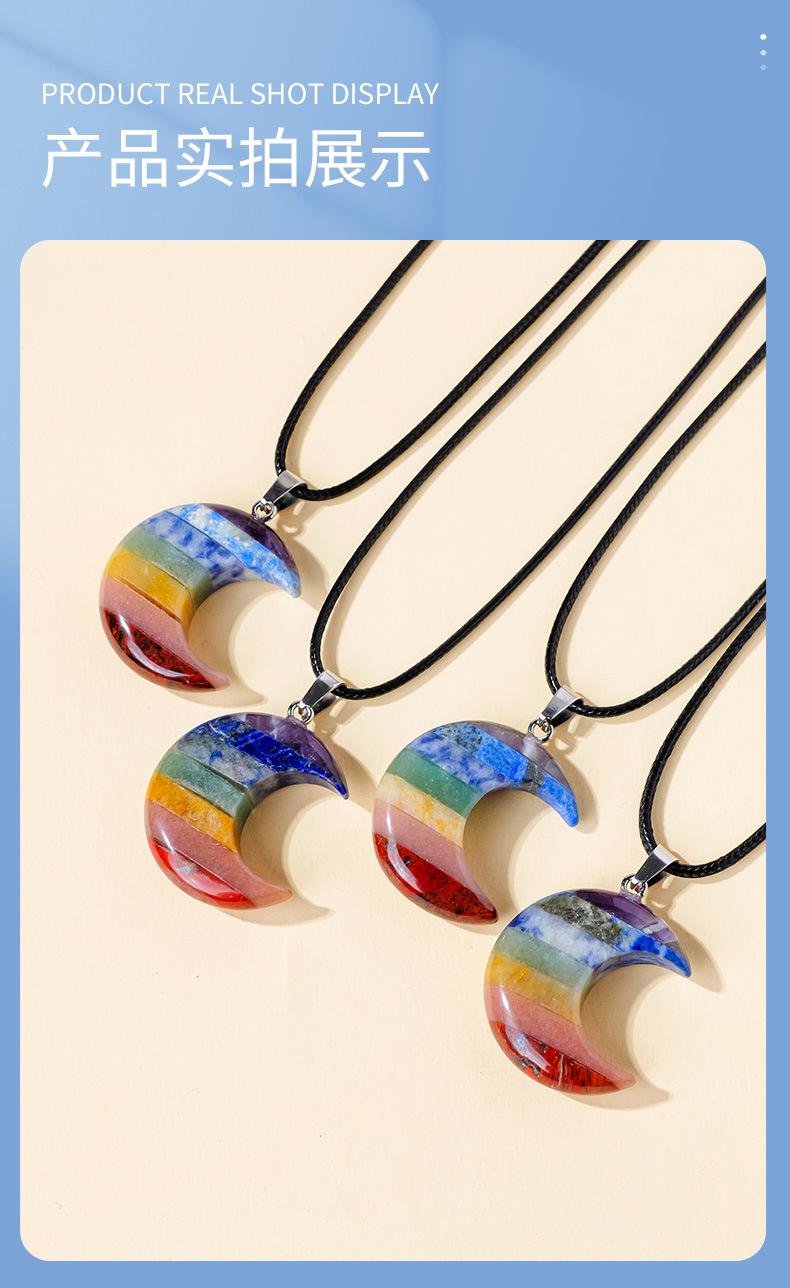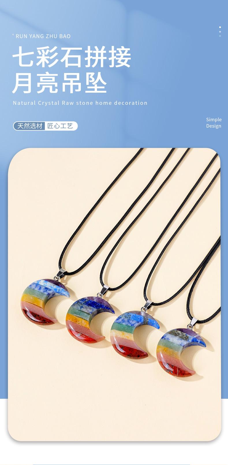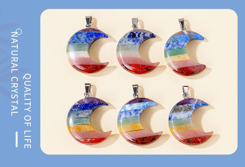 Colgante de luna con mosaico de piedra natural de colores, cristal transfronterizo europeo y americano, chakela, artesanía de piedra semipreciosa