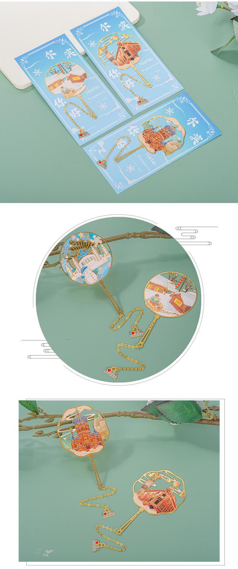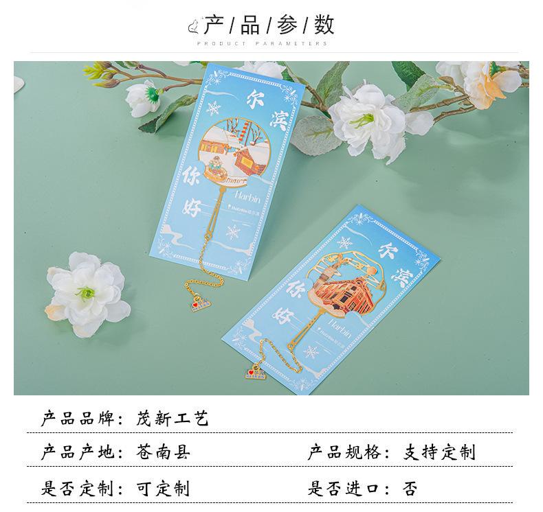 Separador de Metal Cultural y Creativo Turismo de Harbin Recuerdo Calado Recuerdo Estilo Chino Regalo Creativo Set de Caja de Regalo