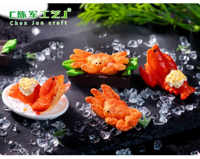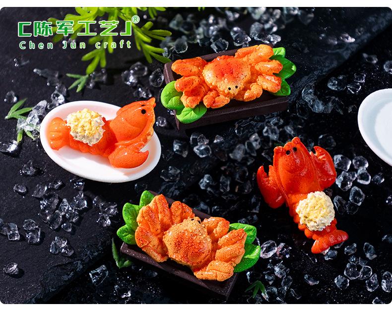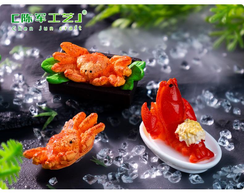 Micropaisaje creativo de mariscos, cangrejo real, comida para jugar, bricolaje, crema, pegamento, refrigerador, pegatinas, accesorios, mini adornos pequeños