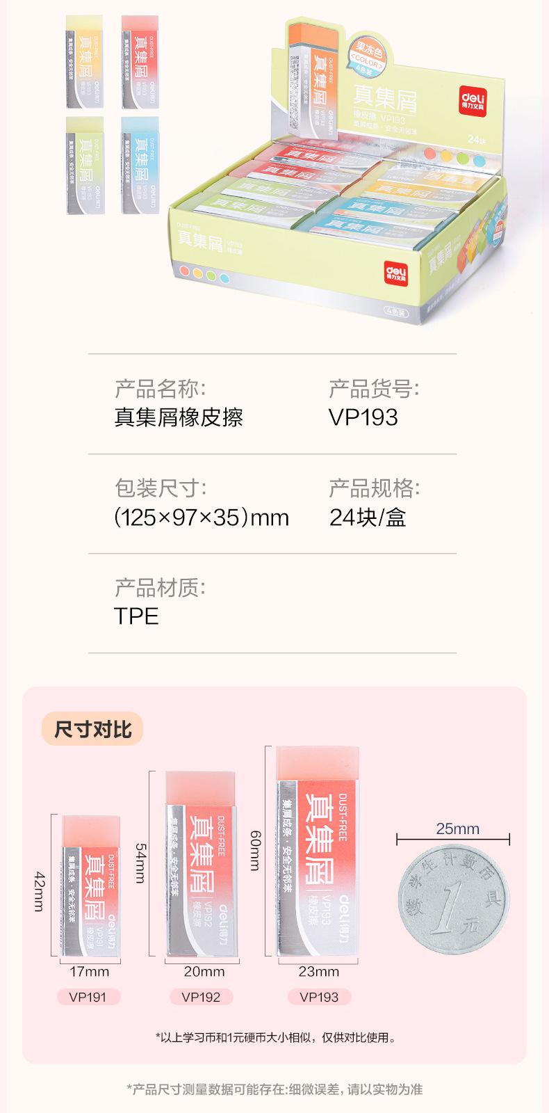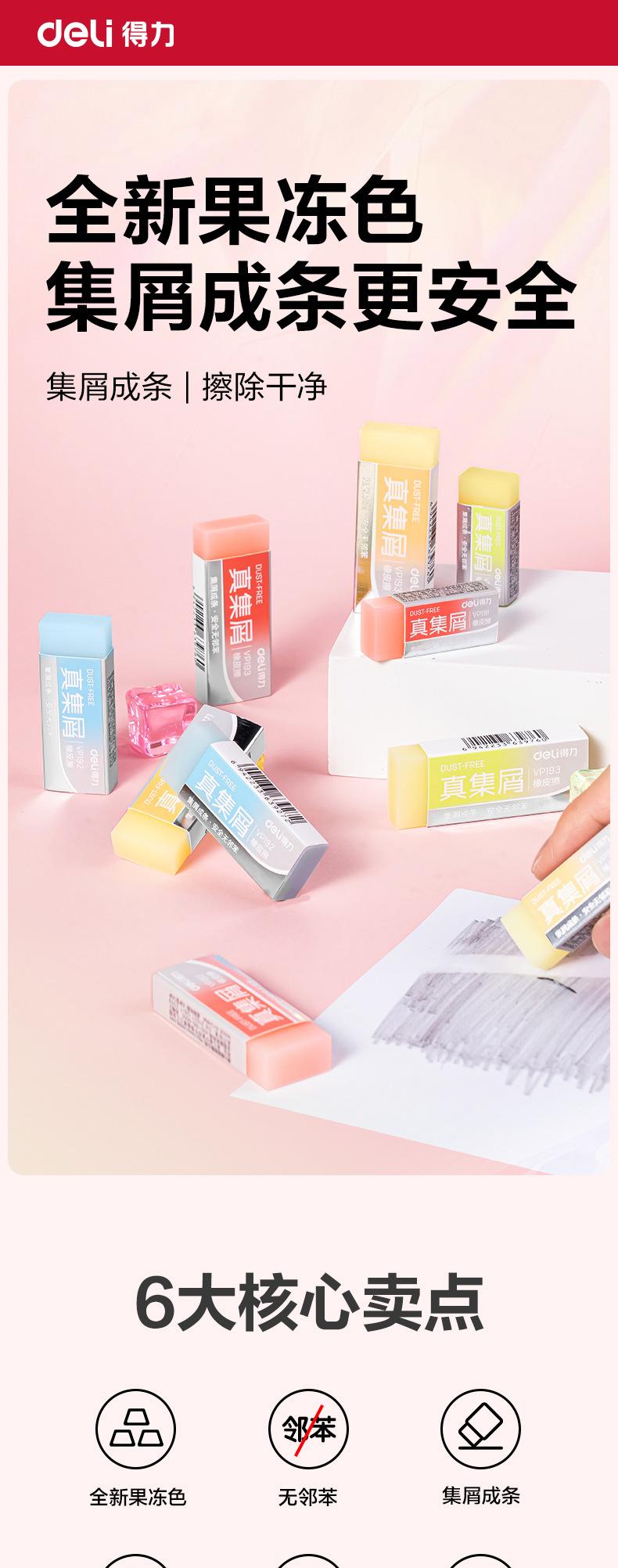 Goma de borrar Deli VP193 con color de jalea de miga real para estudiantes para limpiar y goma de borrar segura sin o-benceno