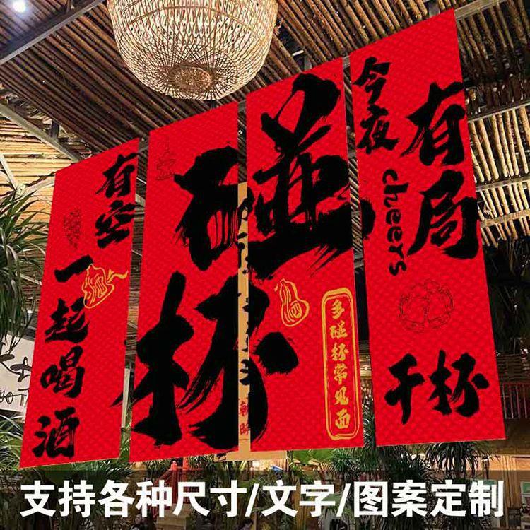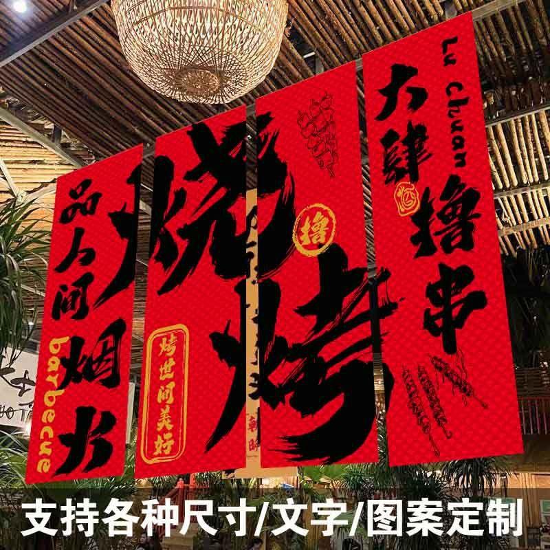 Tela colgante para pancarta de bistró, tela con trasfondo cultural, tienda de ollas calientes, tienda de barbacoas y cerveza, tela colgante con atmósfera de red, tela colgante con tarjeta perforada roja