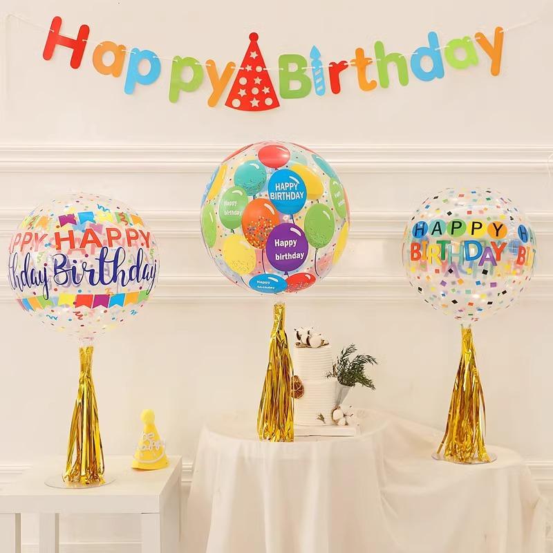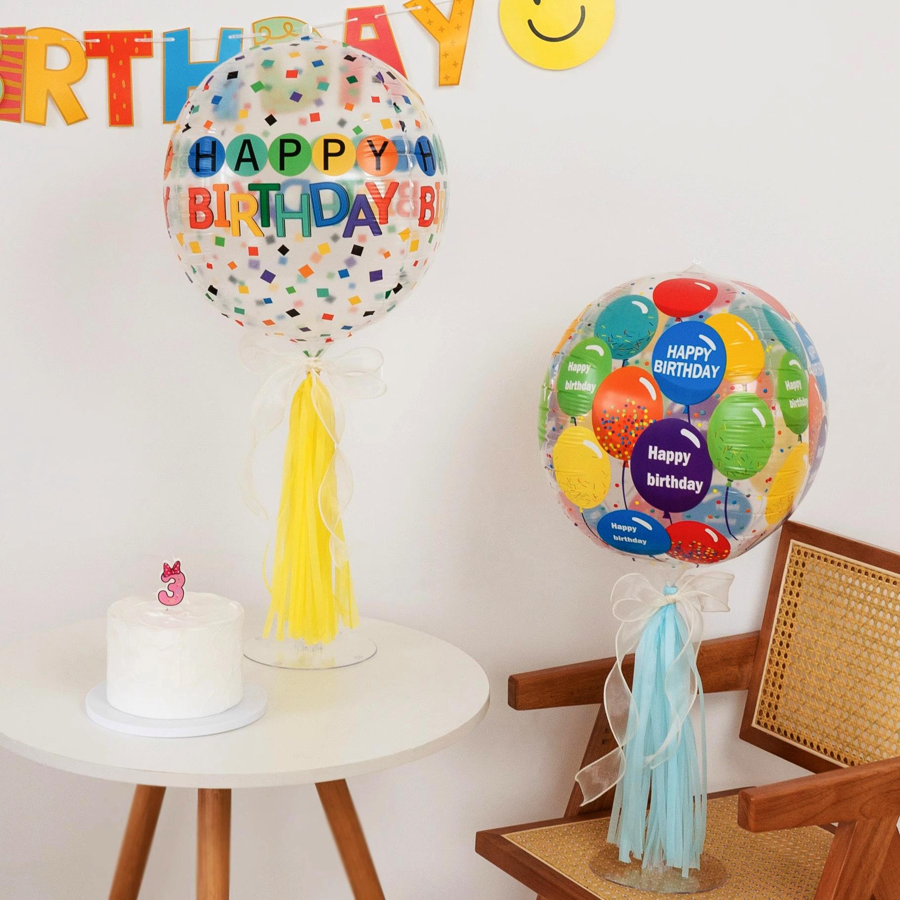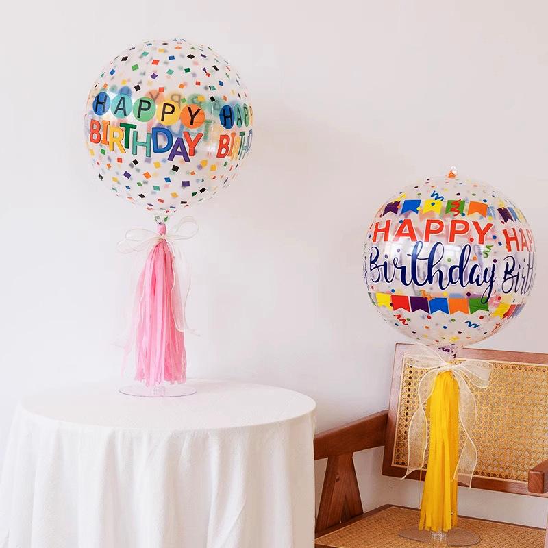 Bola de onda 4D de color con impresión transparente esférica estilo Ins, diseño de escena de fiesta de cumpleaños para niños, accesorios flotantes de mesa
