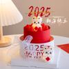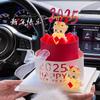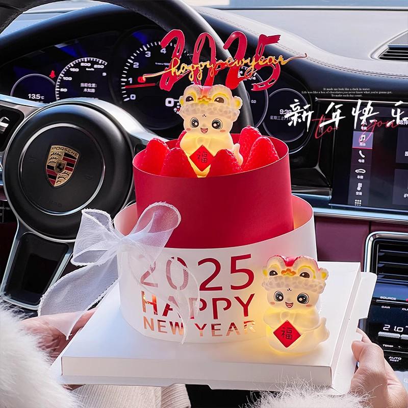 Decoración de pastel de Año Nuevo 2025 con borde de acrílico, tarjeta de Internet, lámpara de serpiente de luz de pelo rojo, decoración de pastel de Año Nuevo enchufable