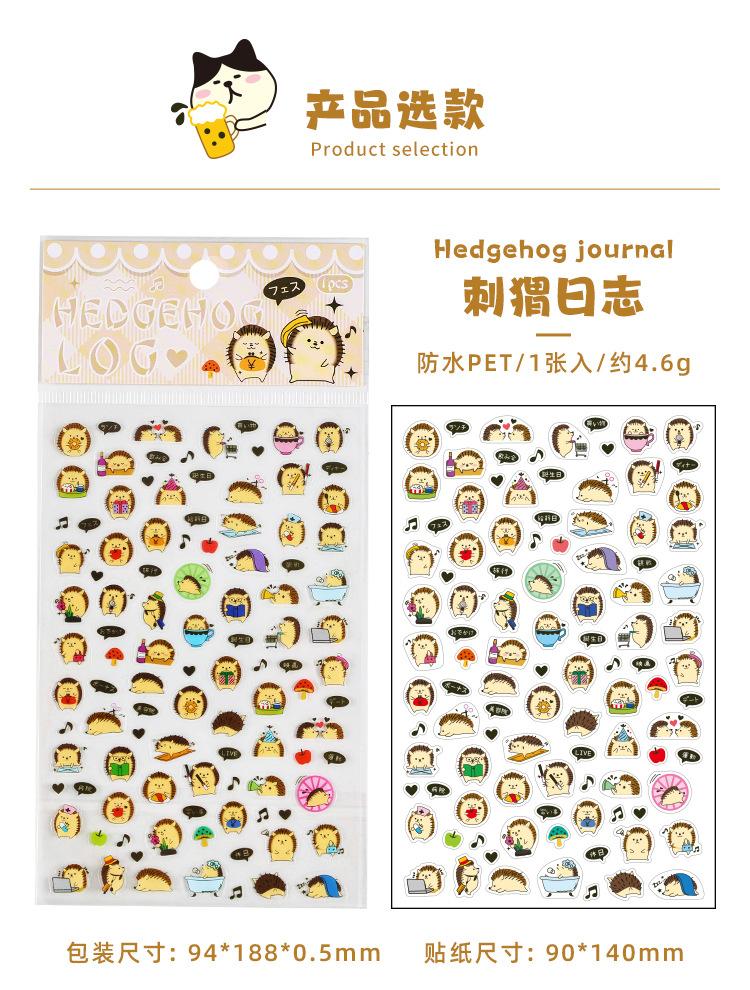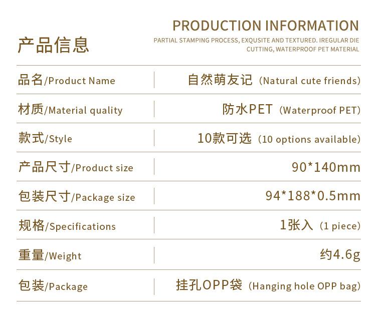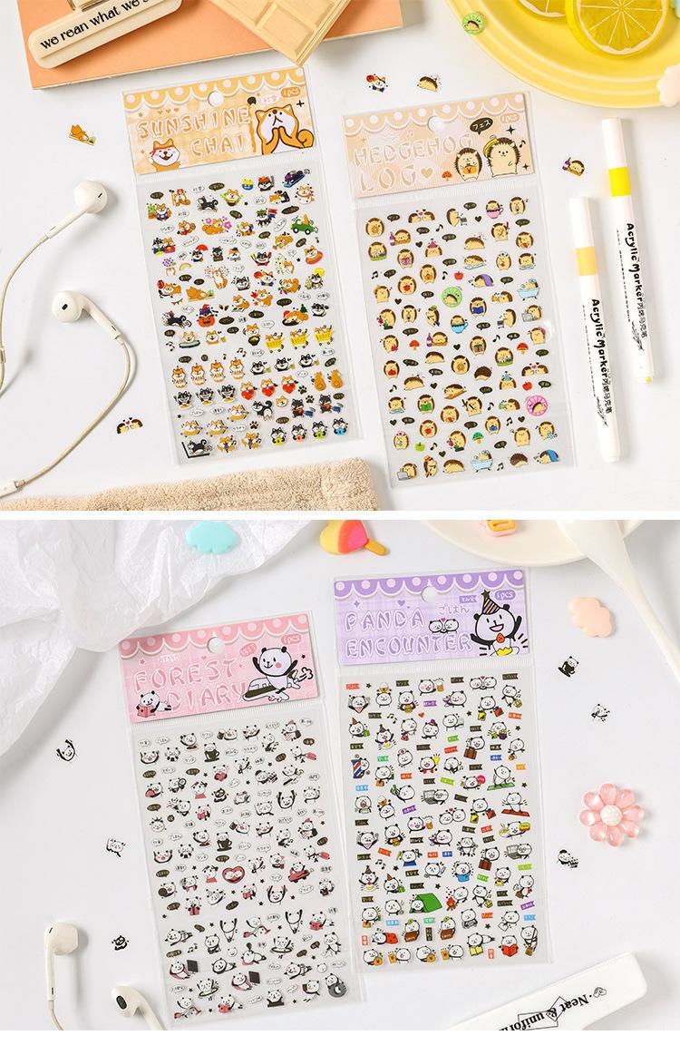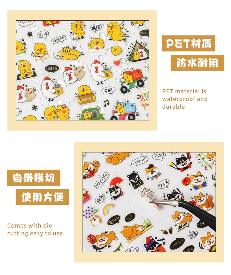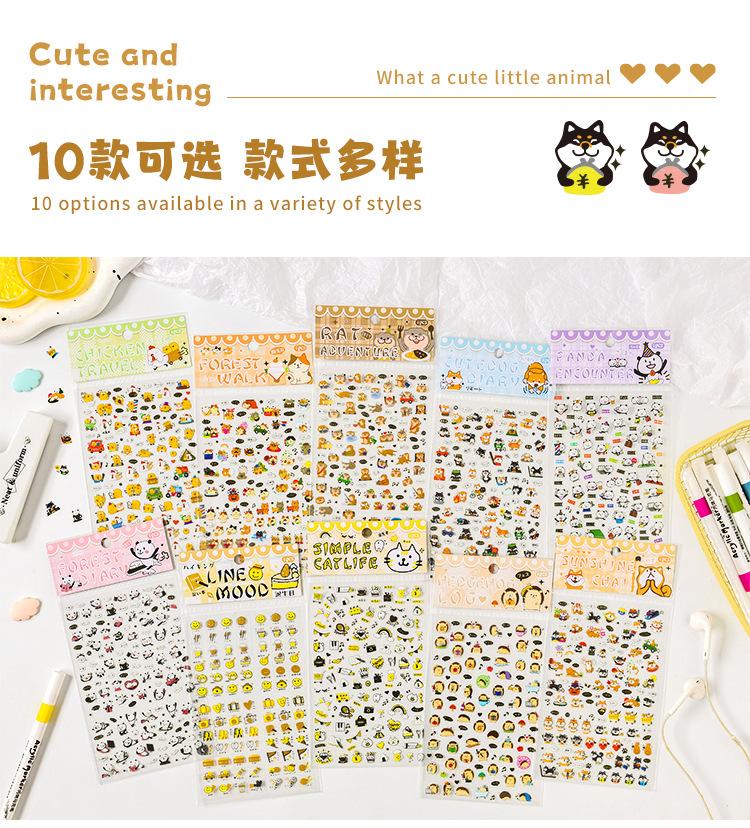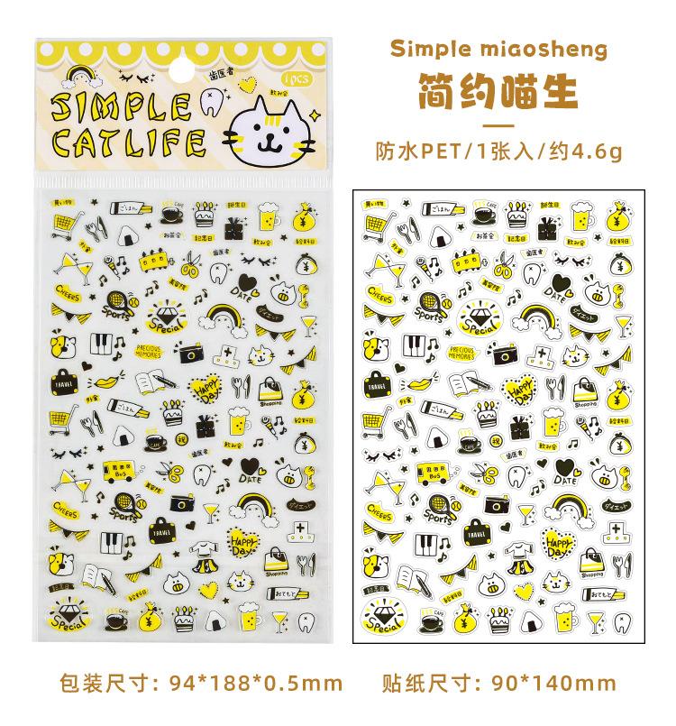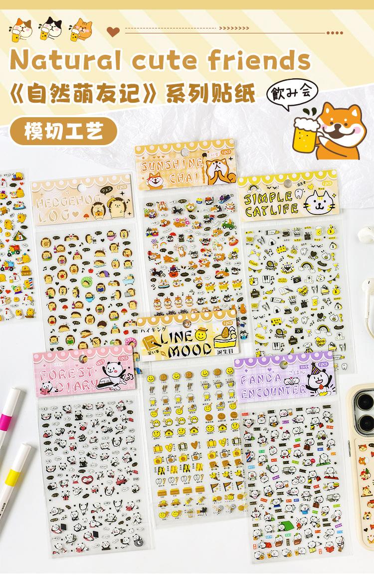 Pegatina de cuenta de mano de dibujos animados lindos de Yuezhen Natural Meng Friends, pegatina de cuenta de mano de película cortada para niños de PET transfronterizos
