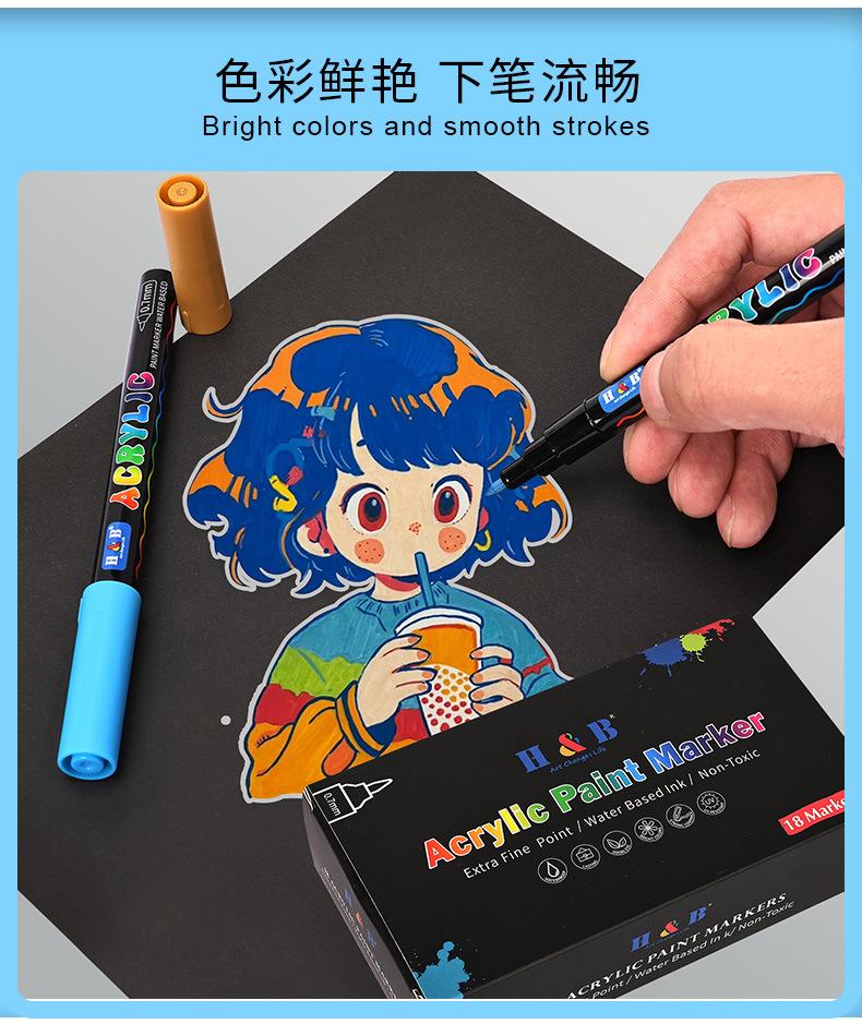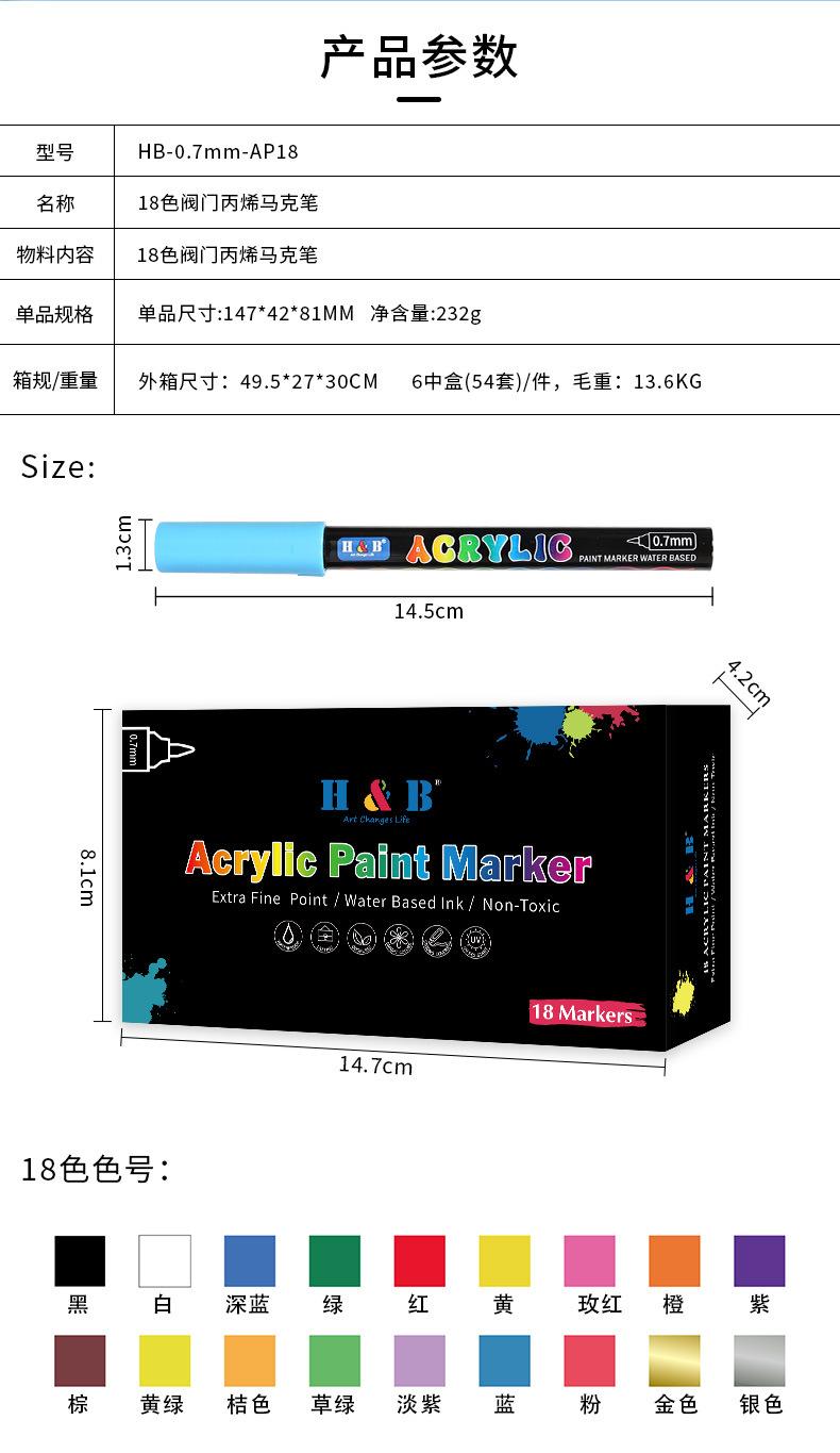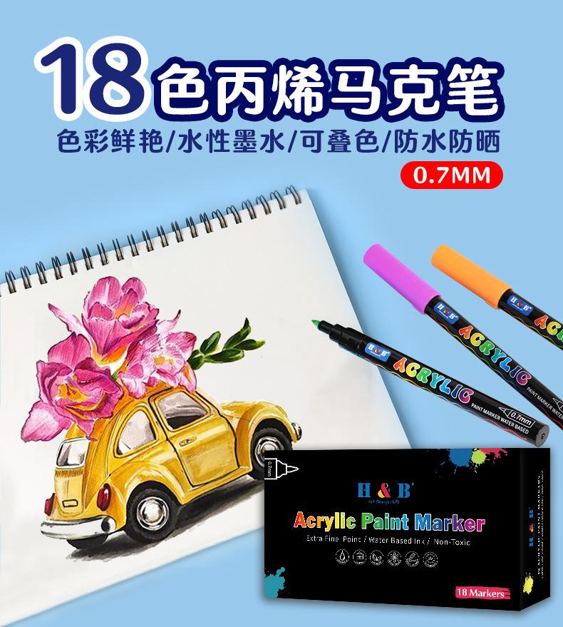 Marcador acrílico de 18 colores para pintura infantil color no transparente apilable bolígrafo para marcar cuentas de mano impermeable bolígrafo para grafiti
