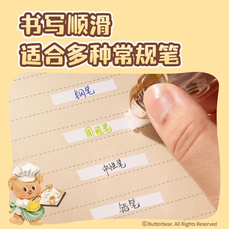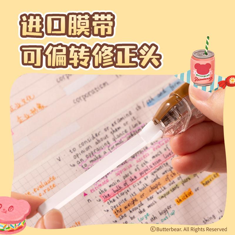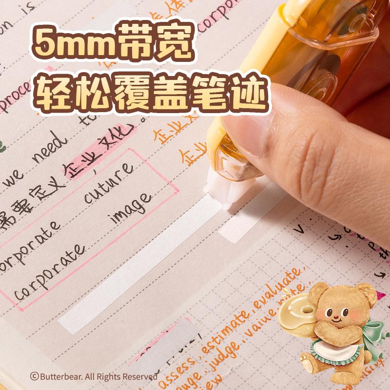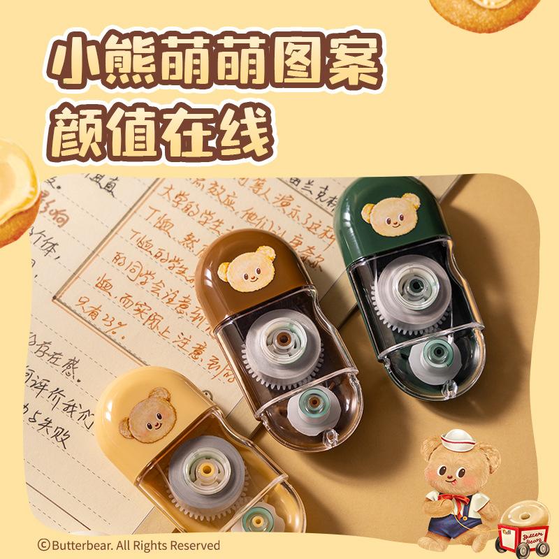 Cinta correctora de papelería Deli Butter Bear, cinta correctora de alto valor de color con núcleo reemplazable para estudiantes, cinta correctora antiseca y a prueba de polvo