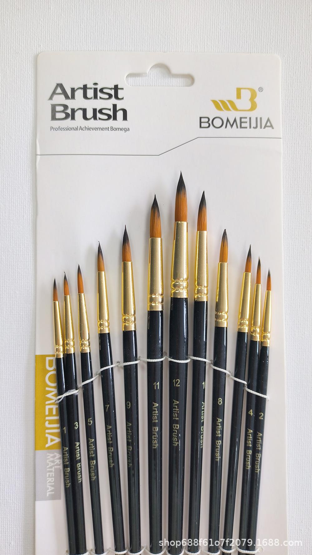 Transfronterizo 12 Pinceles de Pelo de Nailon Bicolor Mango Negro Acuarela Acrílico Pintura al Óleo Gouache Set de Pinceles Pigmento Venta al por Mayor