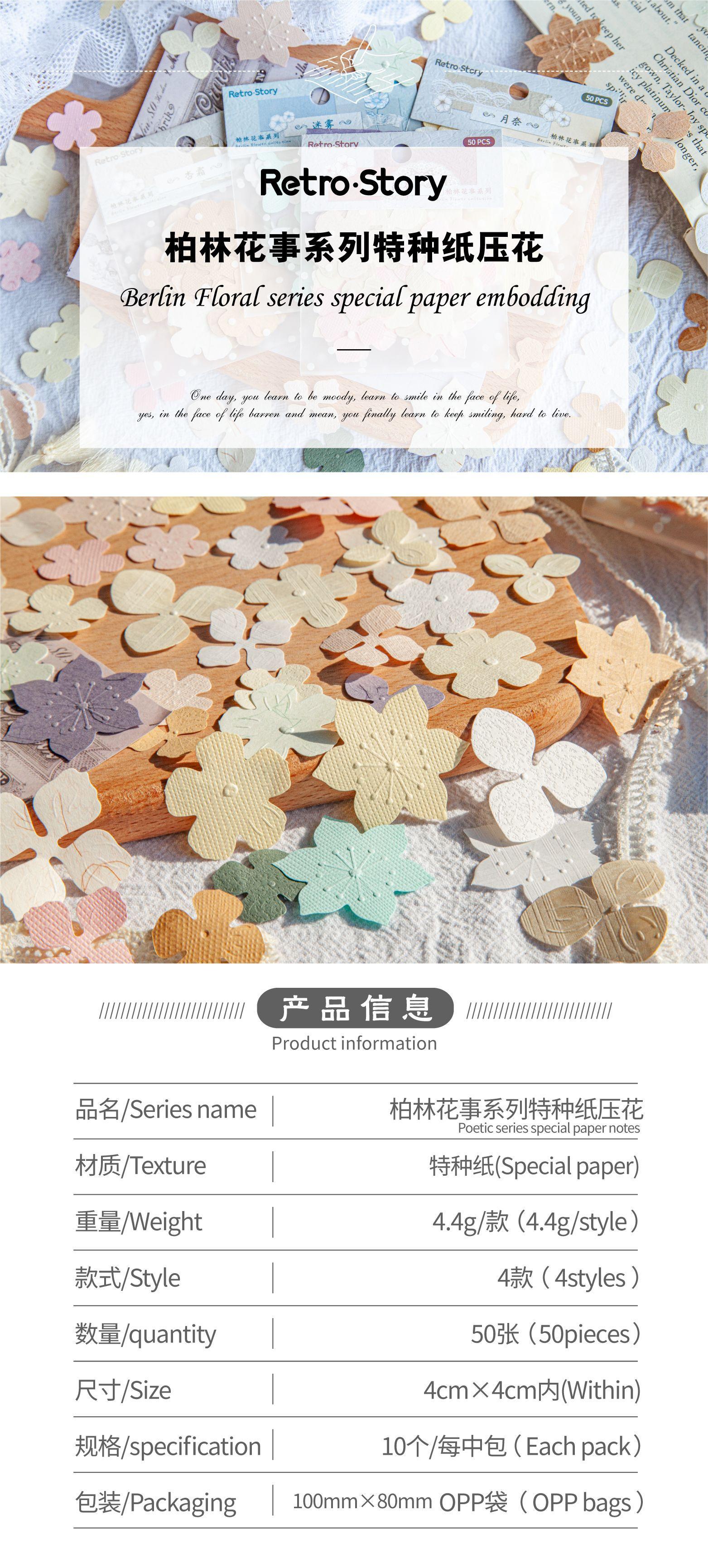 Retrostory Berlin Flores Estéreo 3D Retro Repujado Material de Álbum de Recortes Papel Especial Adhesivo Decorativo para Álbum de Recortes