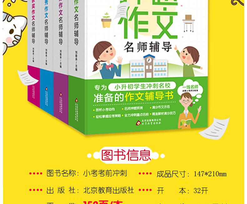 La colección completa de libros de composición para estudiantes de secundaria. Sprint antes del examen. Los 4 volúmenes. Libros de composición de secundaria de grado 3 al 6 recomendados.