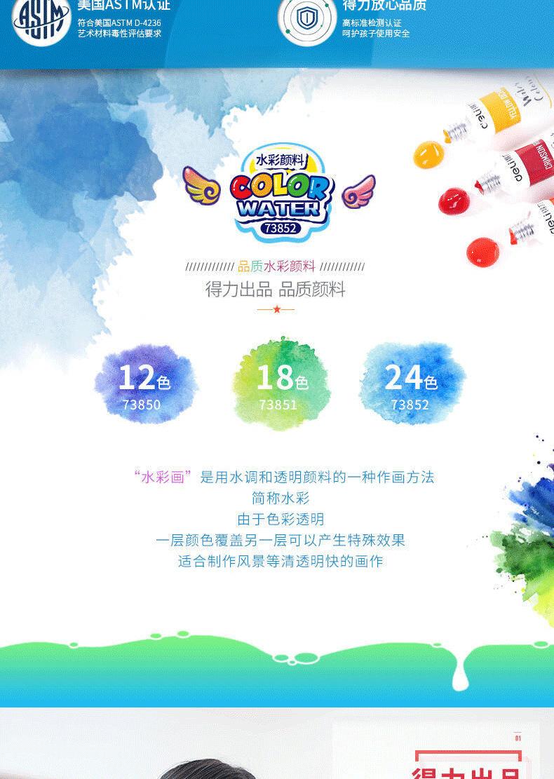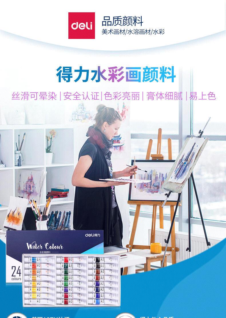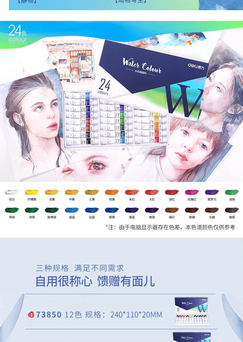 Deli 73852-24 Pintura Acuarela Color Pintura Arte Especial Portátil Estudiante Niños Nivel de Entrada Color de Pintura