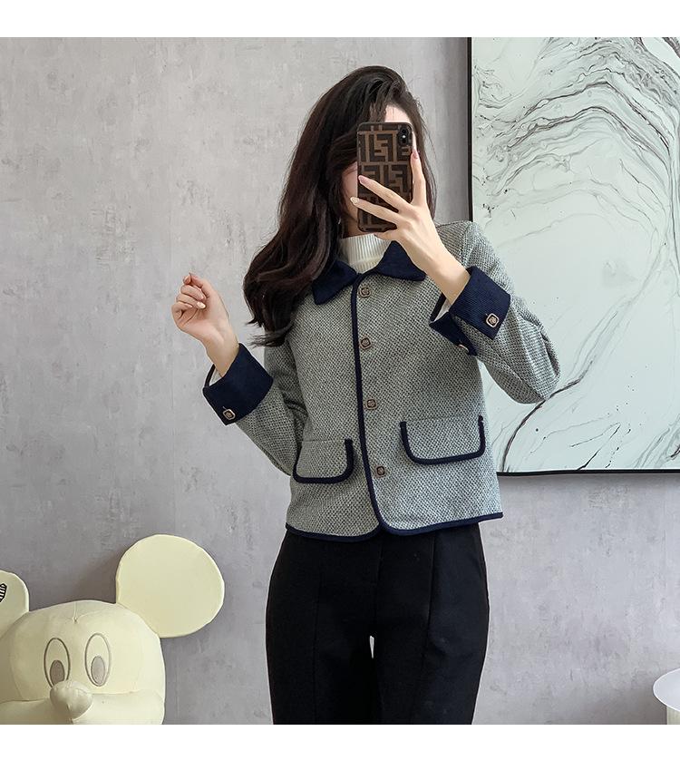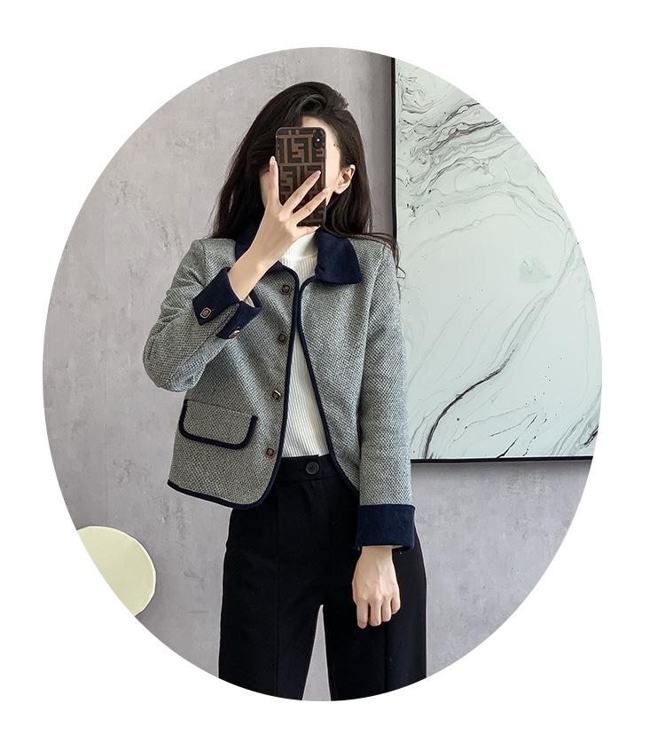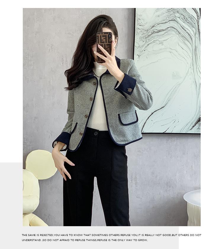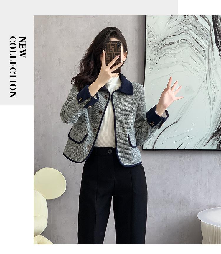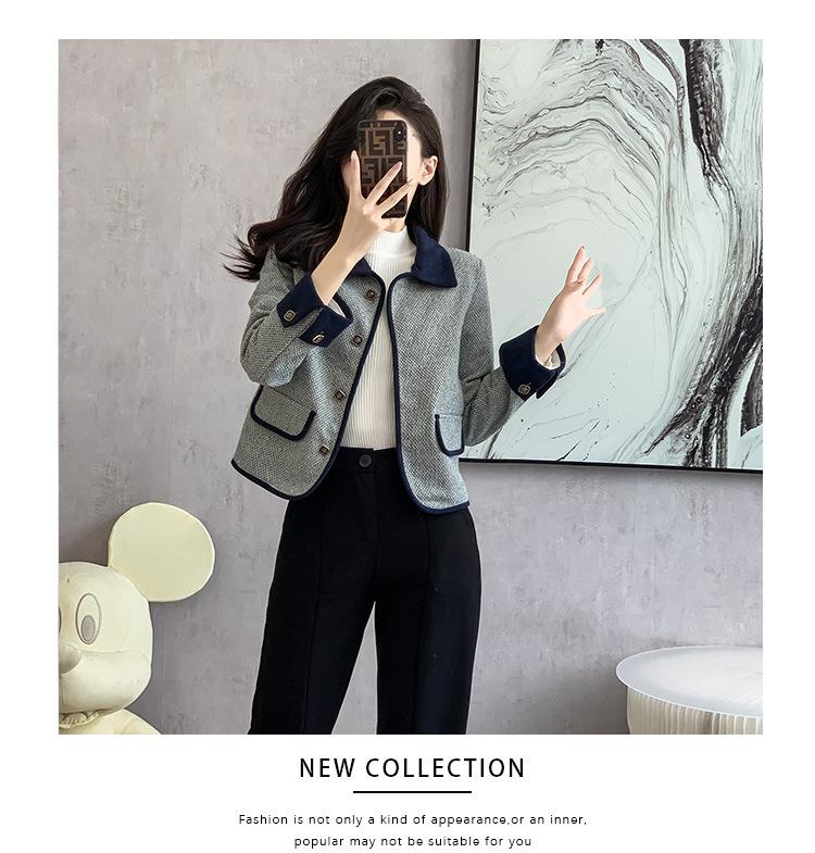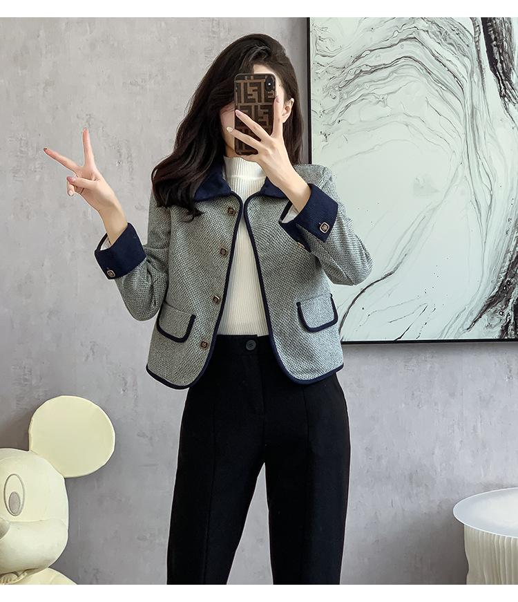 Abrigo estilo tweed para mujer 2025 Otoño Nuevo estilo Moda para mamá Alta gama Pequeño Delgado Ajustado Top corto