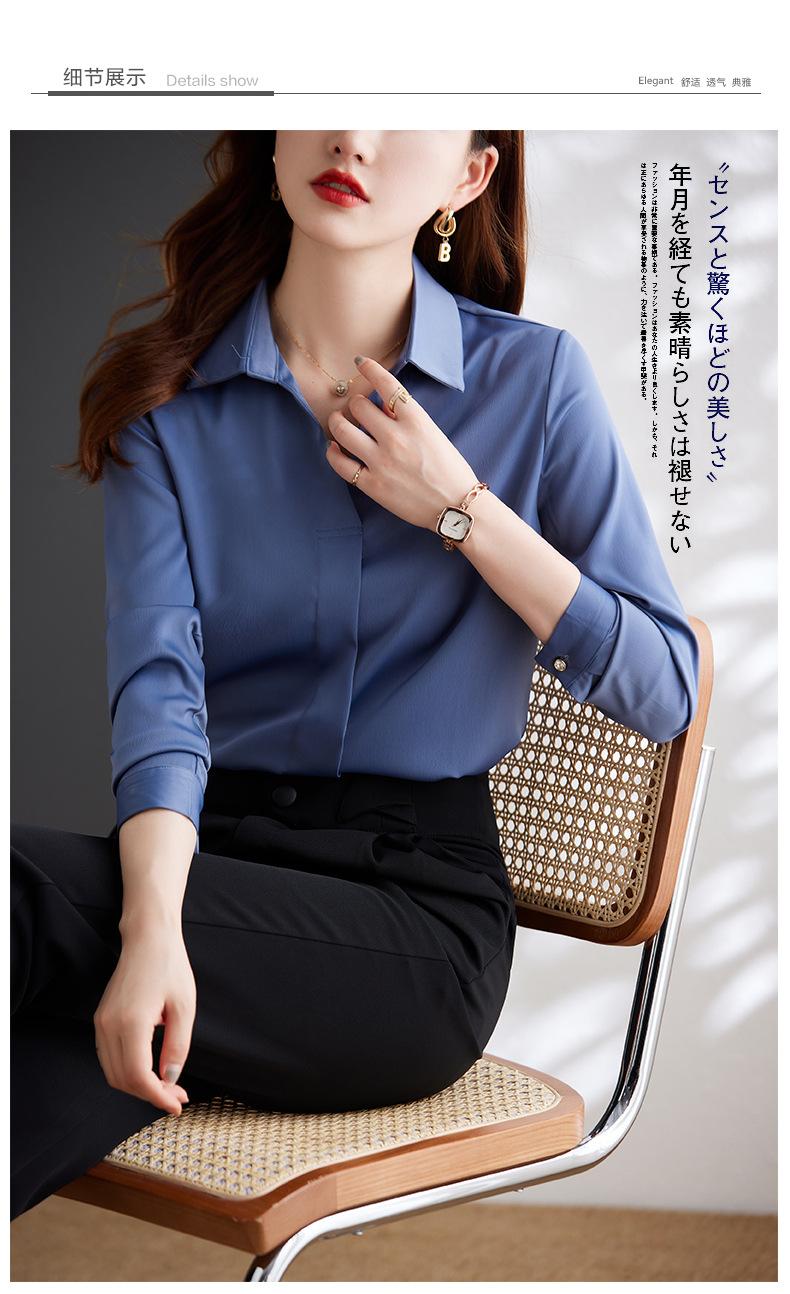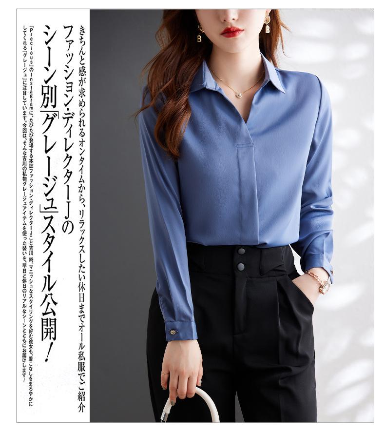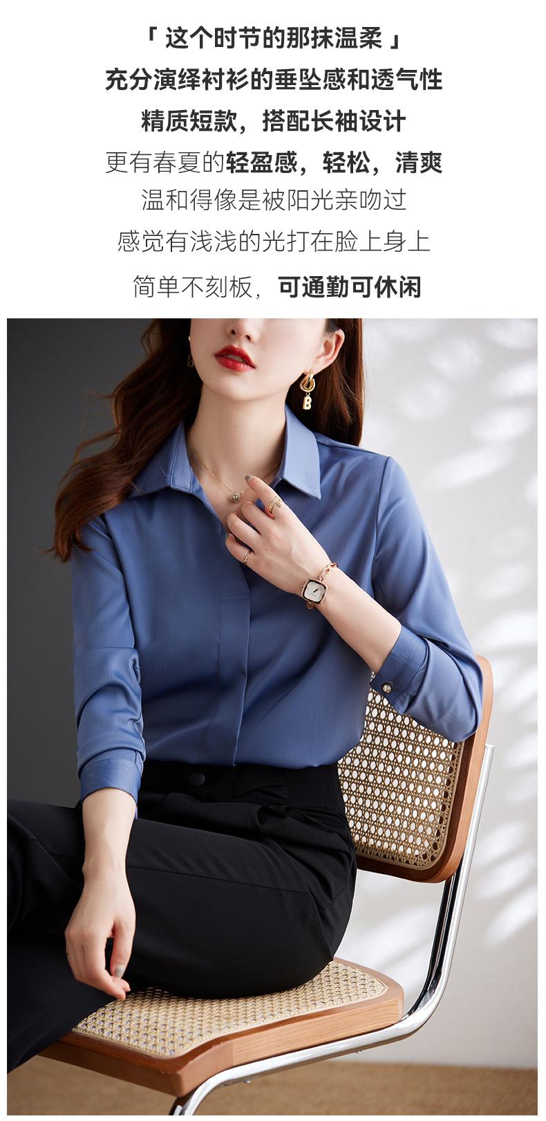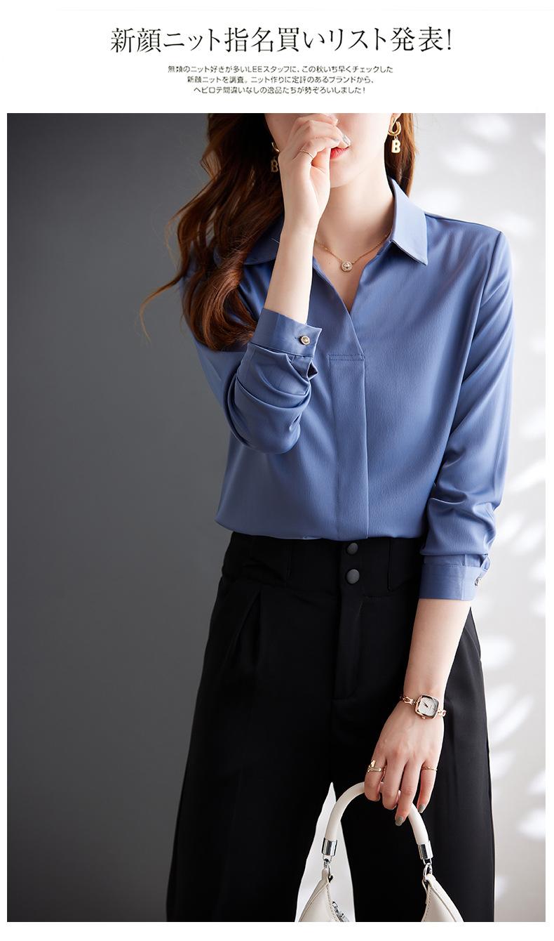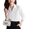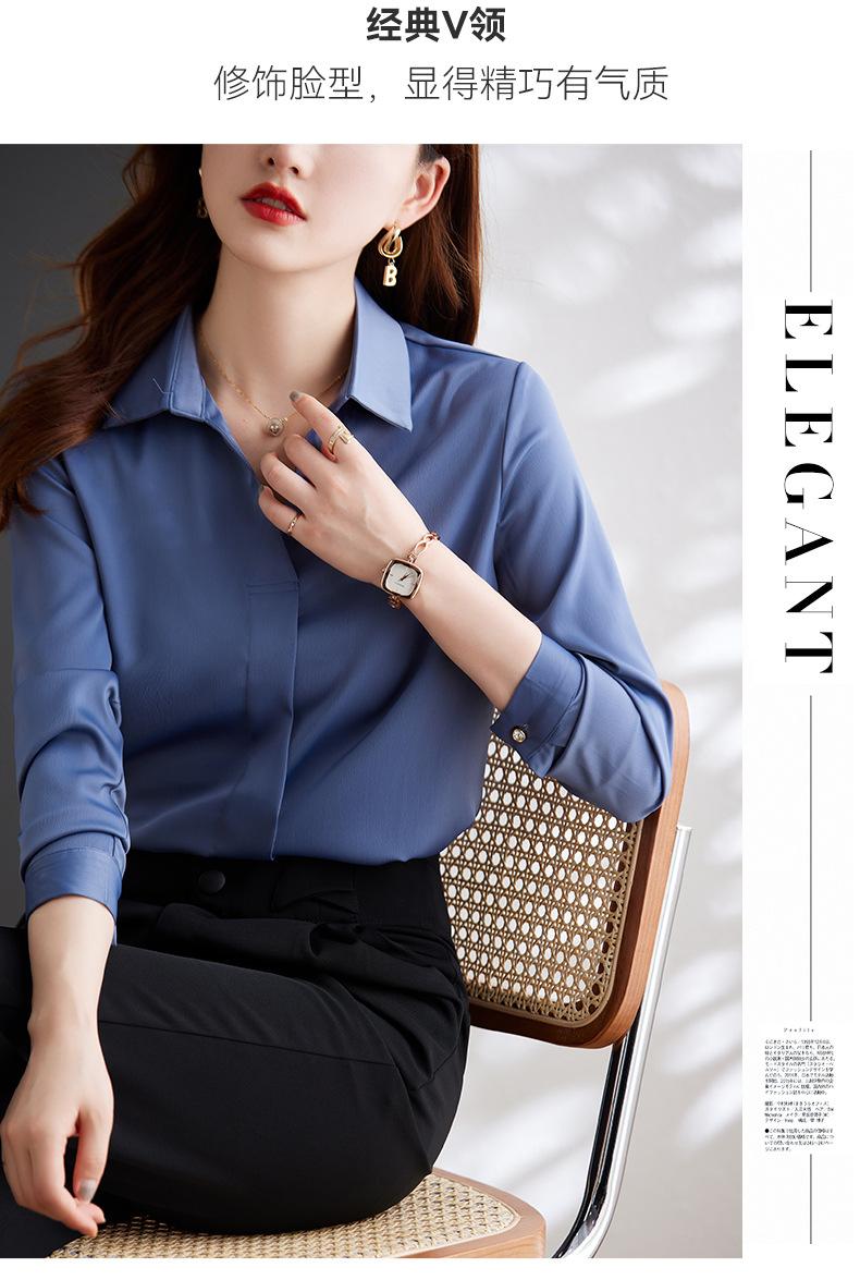 Camisa de manga larga con cuello en V azul nueva primavera verano otoño 2024, camisa blanca para mujer, temperamento de moda simple y versátil