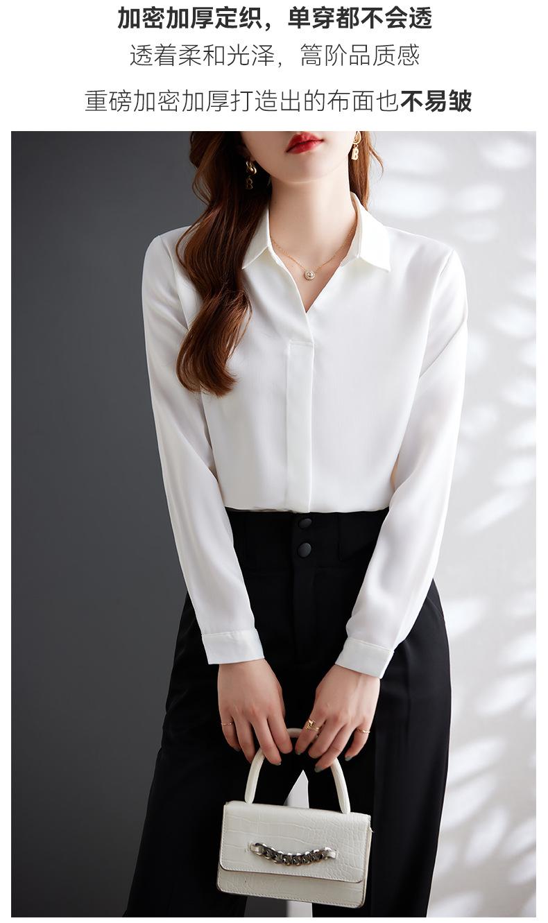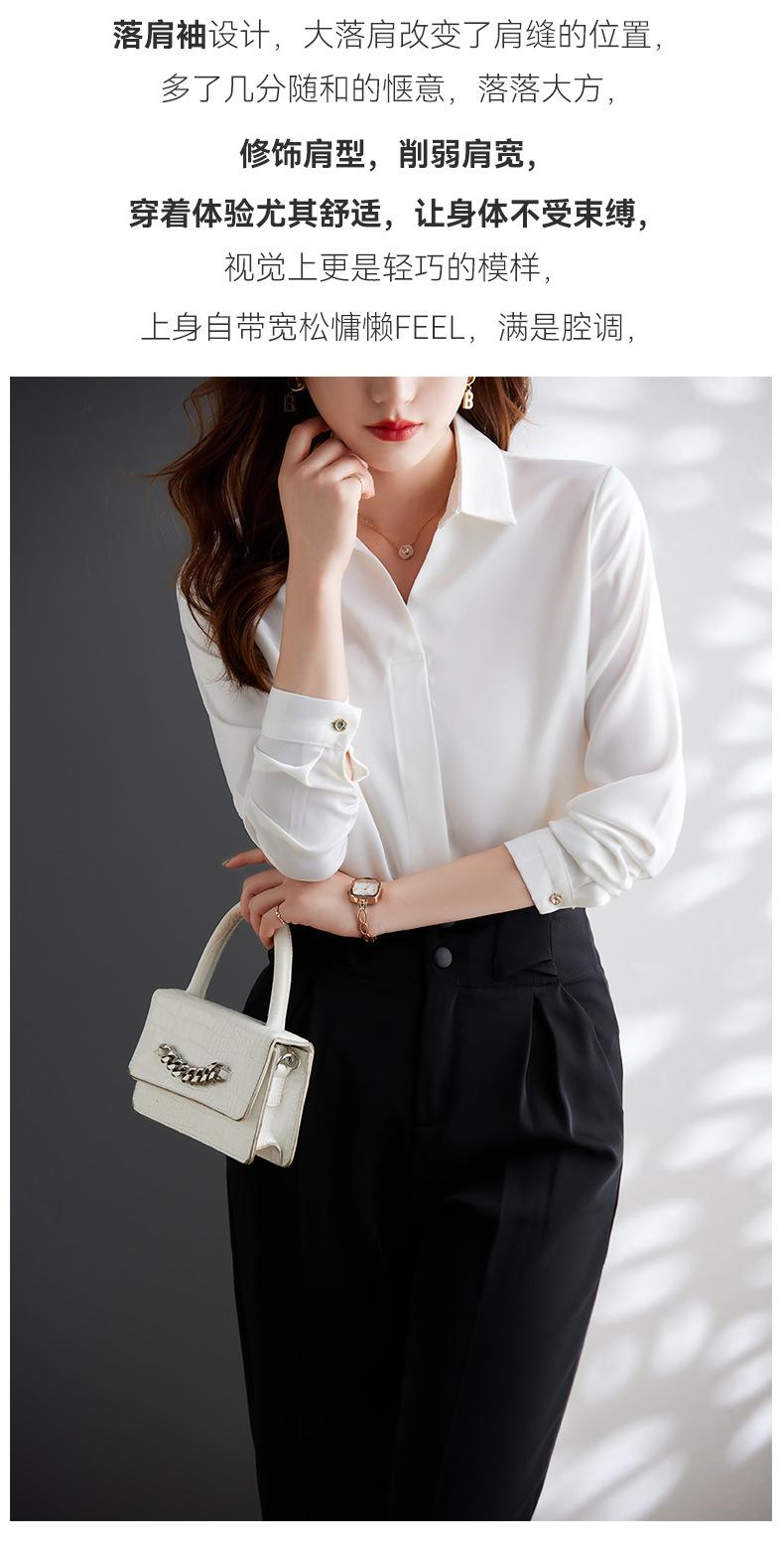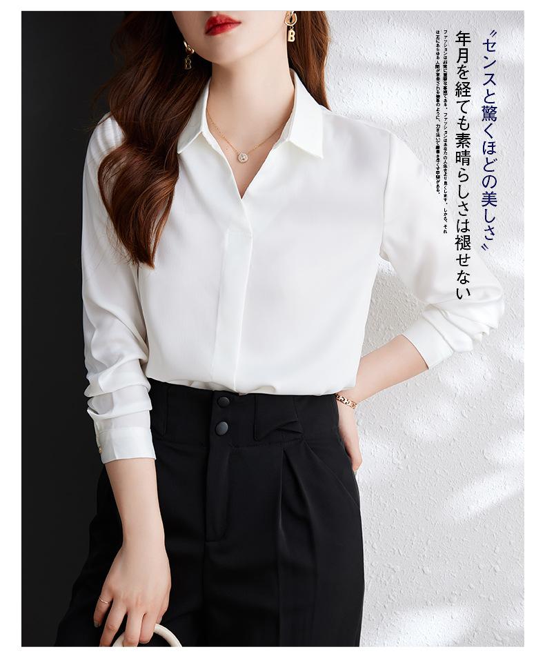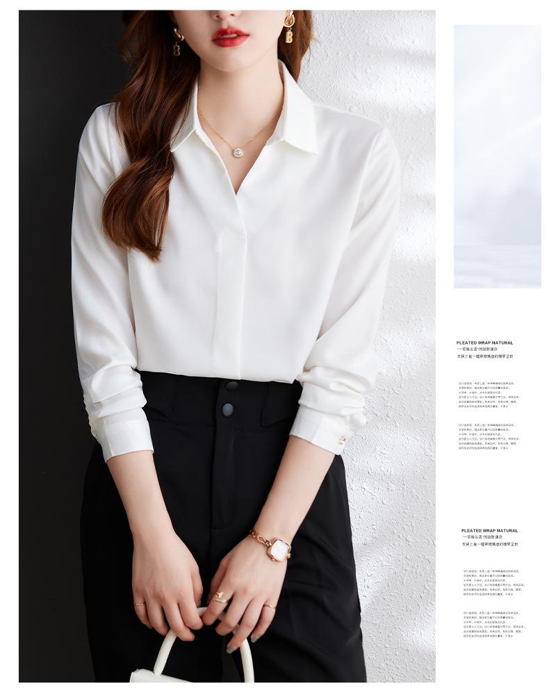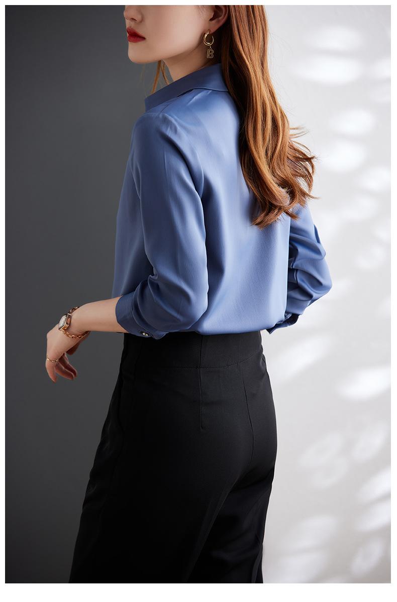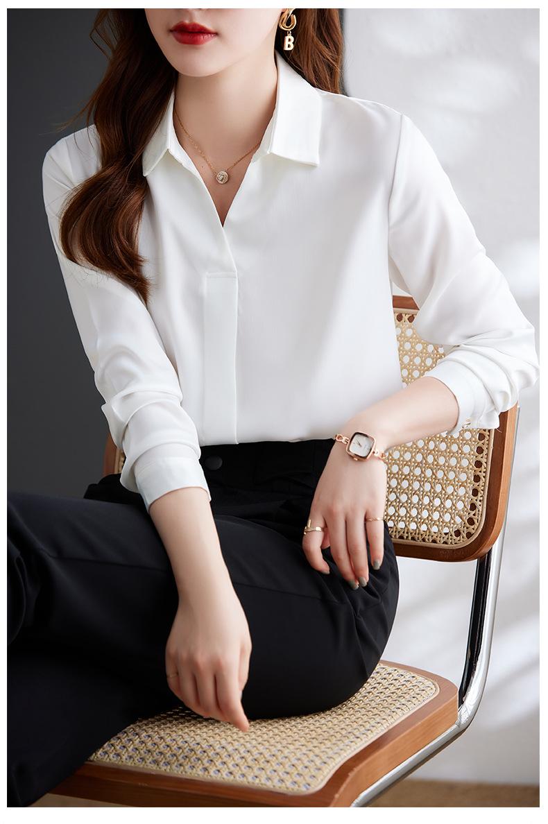 Camisa de manga larga con cuello en V azul nueva primavera verano otoño 2024, camisa blanca para mujer, temperamento de moda simple y versátil