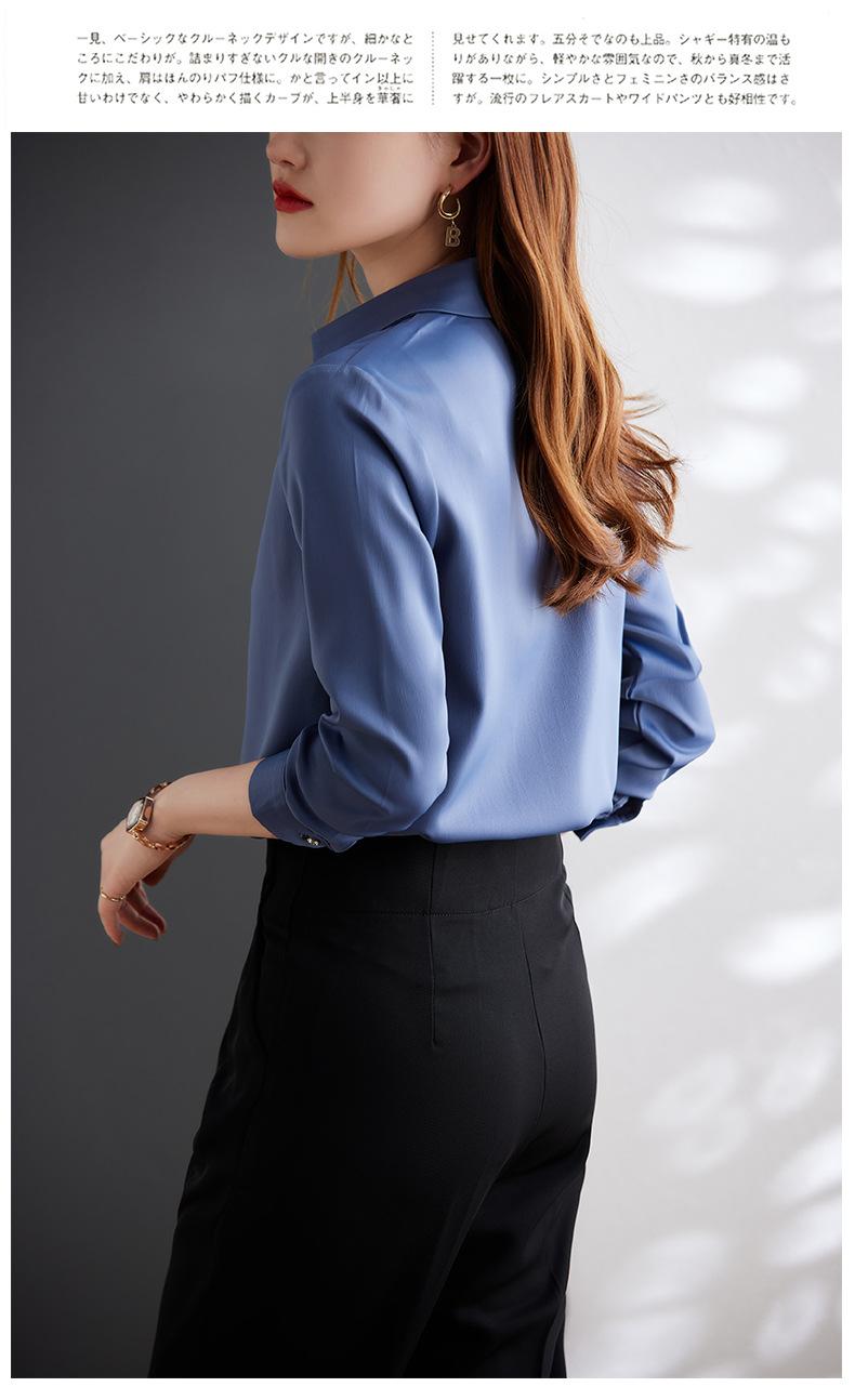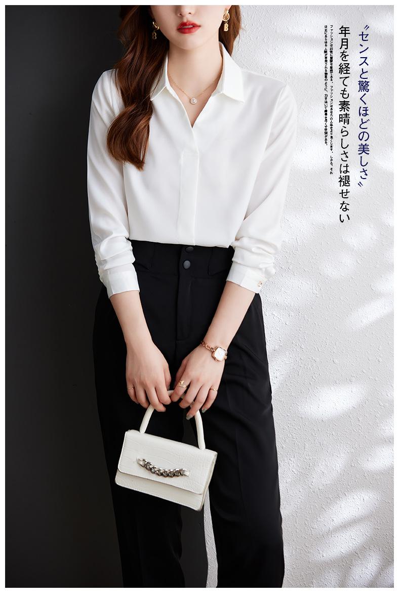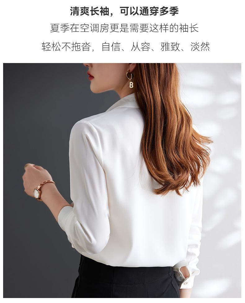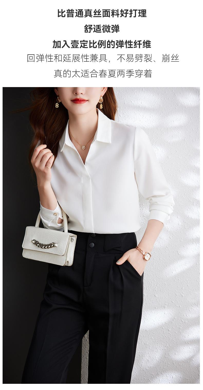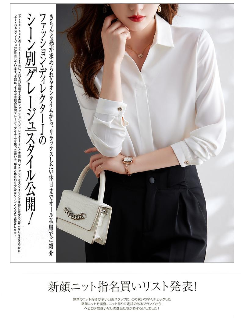 Camisa de manga larga con cuello en V azul nueva primavera verano otoño 2024, camisa blanca para mujer, temperamento de moda simple y versátil