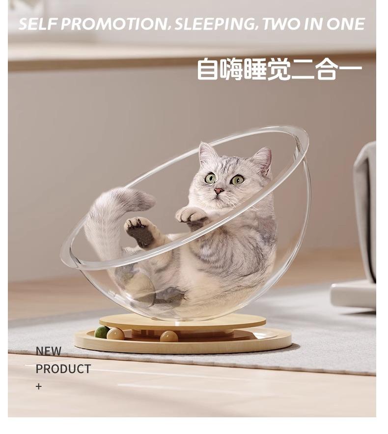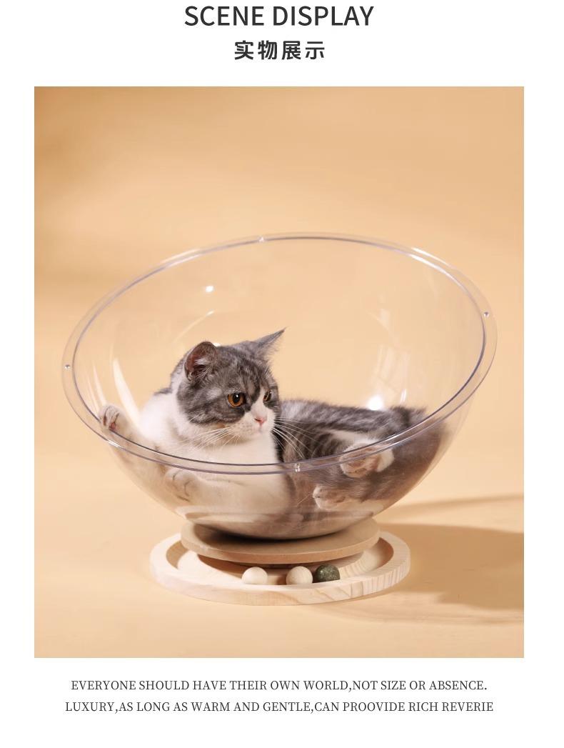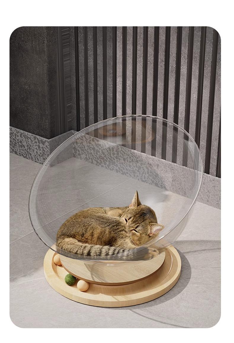 Nido para gatos con cápsula espacial, nido universal de verano para cuatro estaciones, plataforma giratoria para gatos, cama para gatos, nido de seguridad semicerrado integrado
