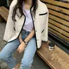 2026 Chic Coreano Otoño Color de Nicho Bloque de Color Único Holgado Bolsillo Cuello en V Manga Larga Cárdigan Chaqueta Corta para Mujer