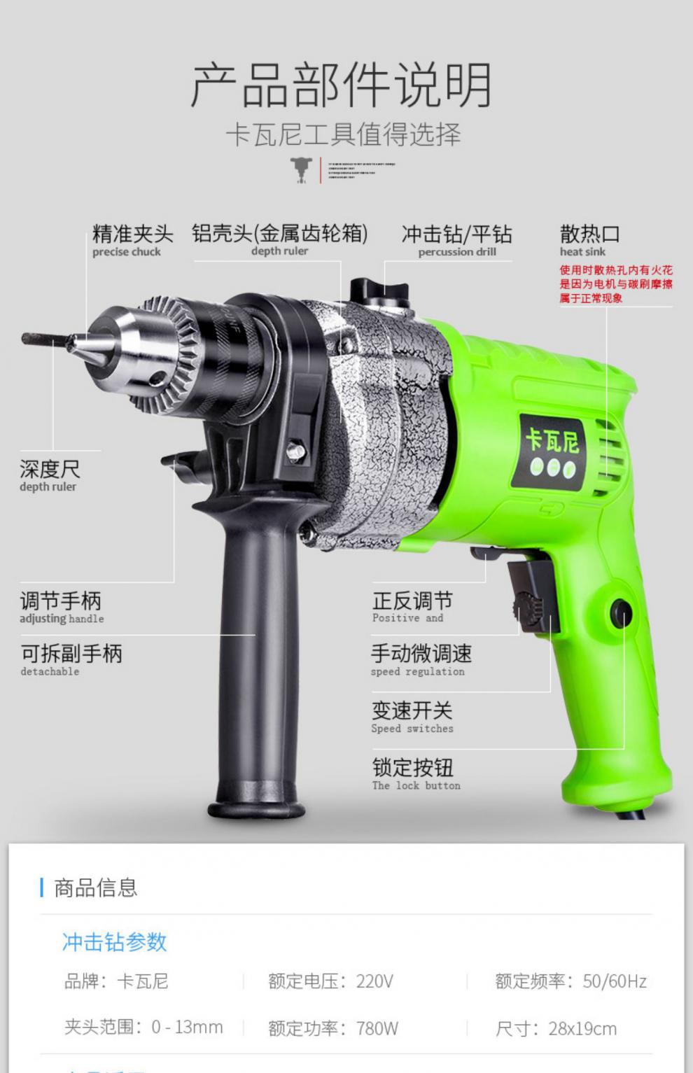 Taladro de impacto, taladro eléctrico, multifuncional, manual, giratorio, herramienta eléctrica, destornillador, pequeño taladro manual de 220 V.