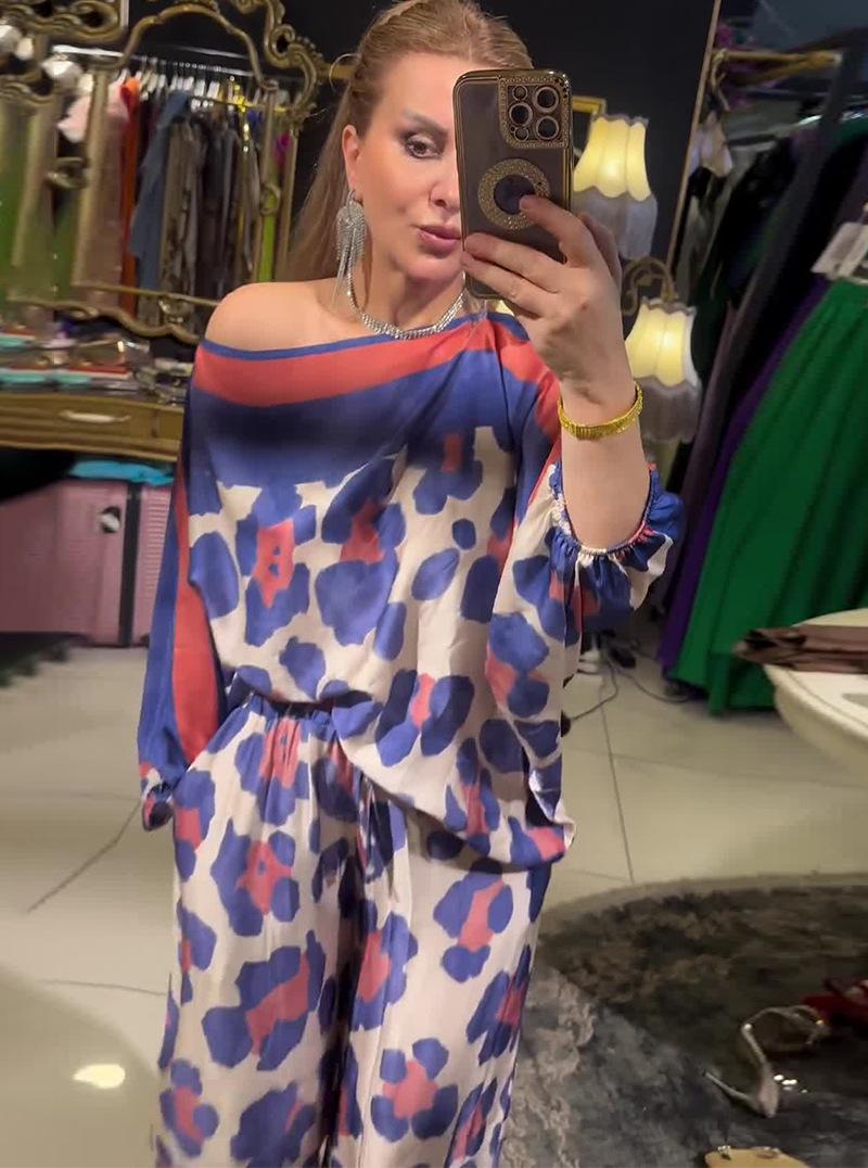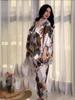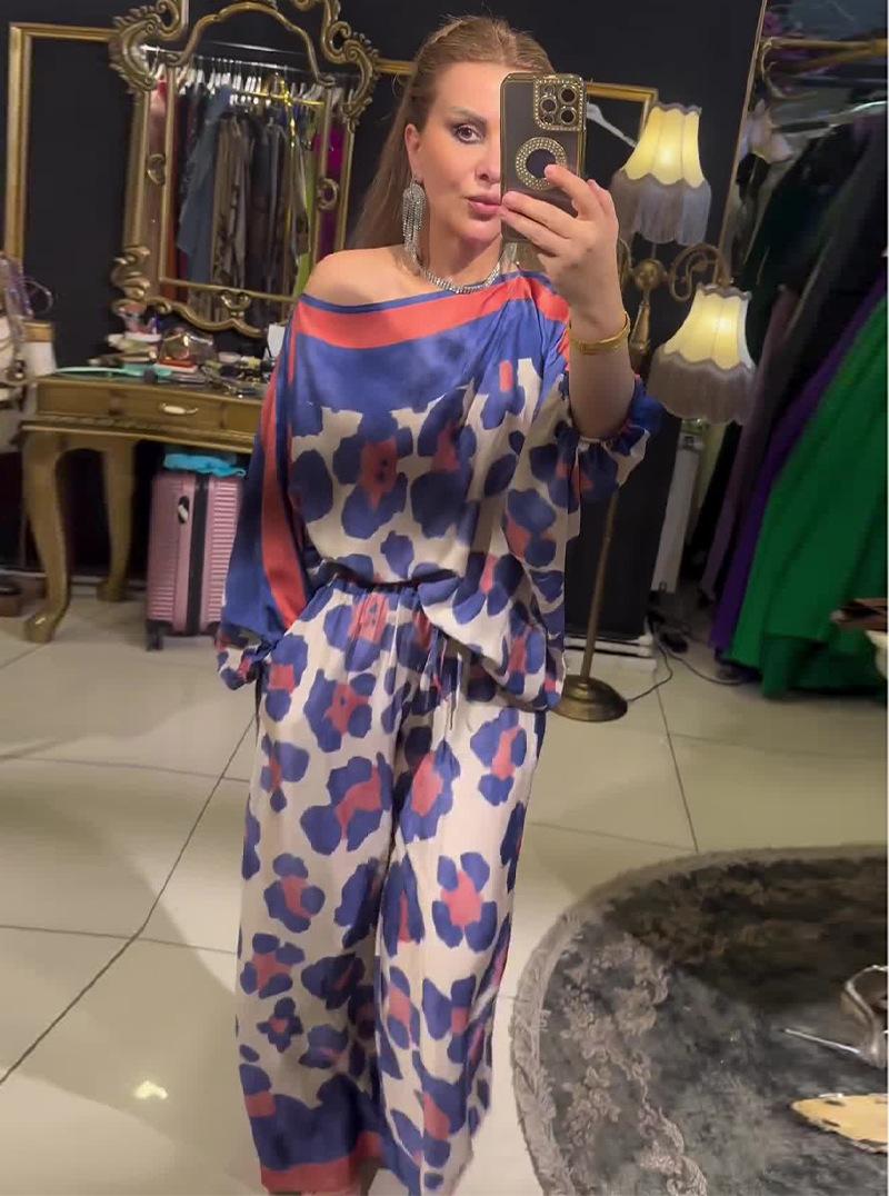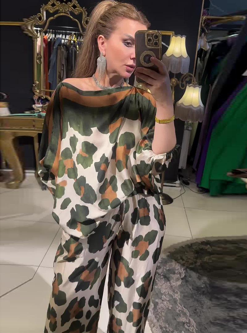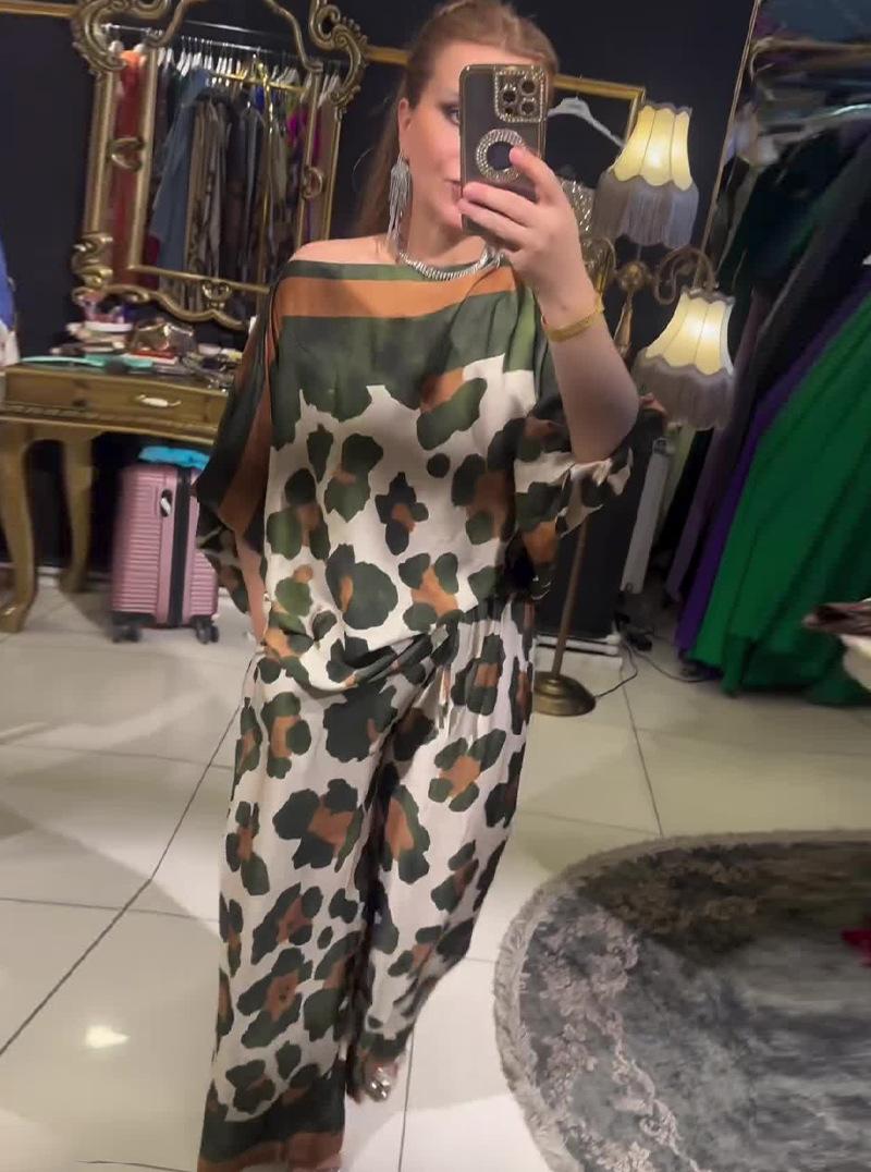 Conjunto elegante de dos piezas de Amazon para otoño de 2024, con nuevo posicionamiento, estampado de manga larga y pantalones anchos, a la moda, para Europa y América.