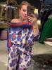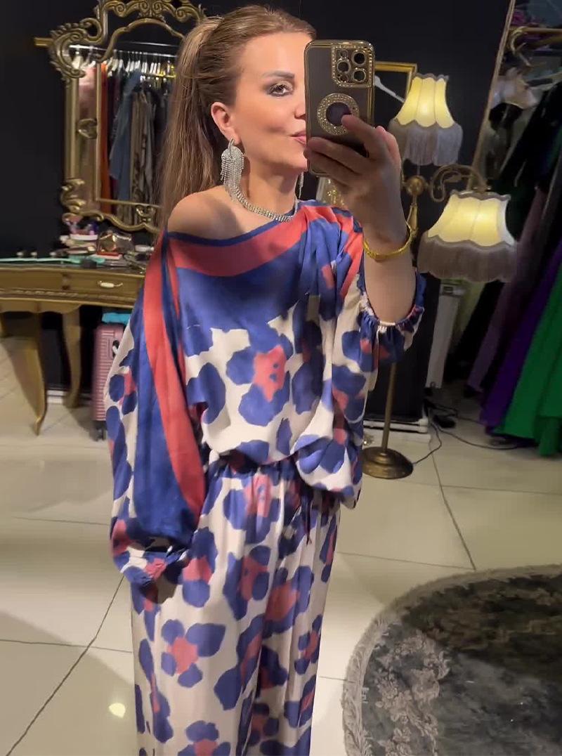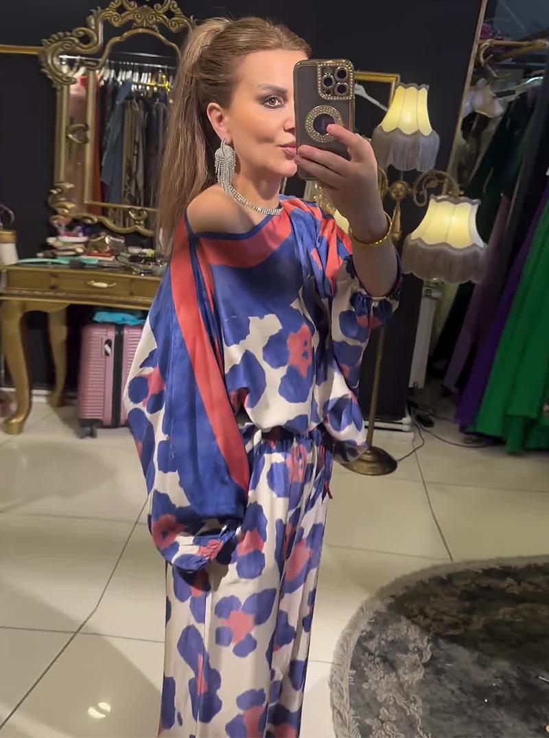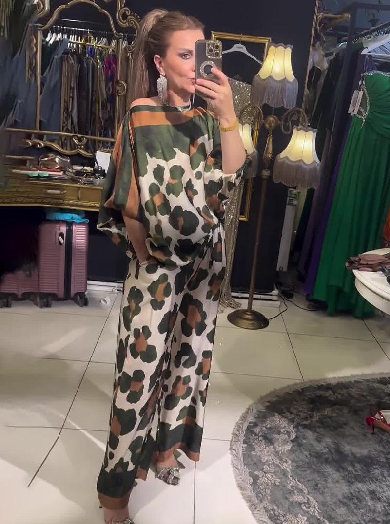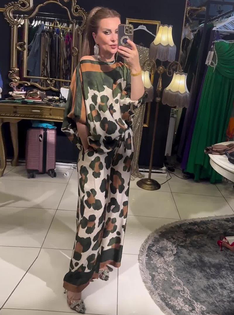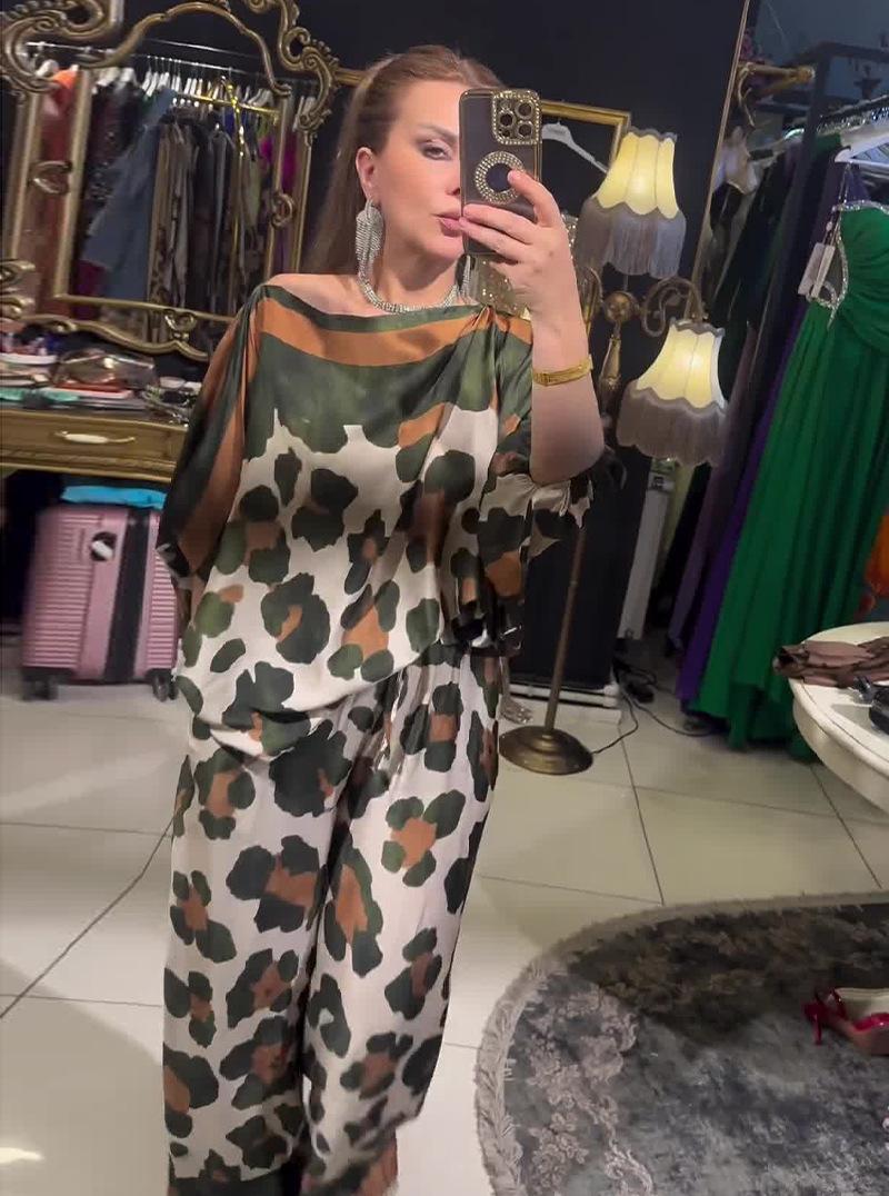Conjunto elegante de dos piezas de Amazon para otoño de 2024, con nuevo posicionamiento, estampado de manga larga y pantalones anchos, a la moda, para Europa y América.
