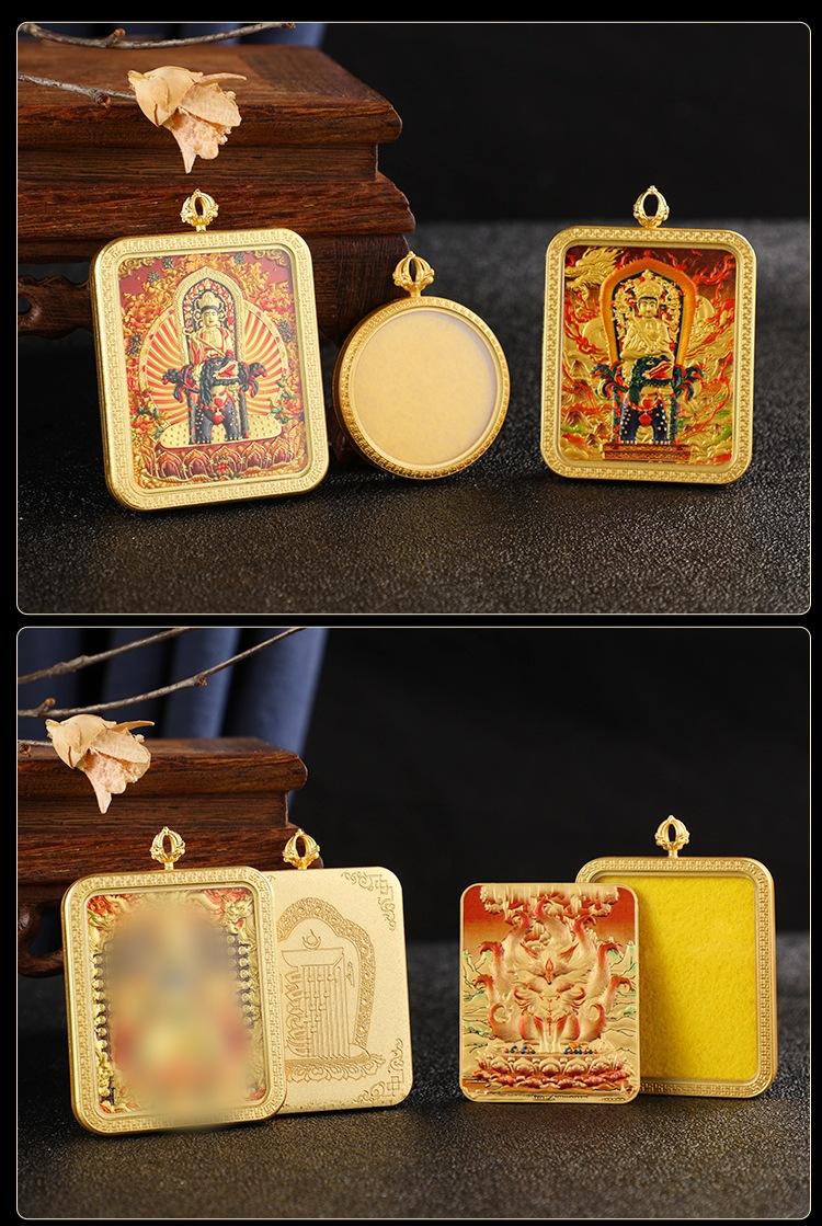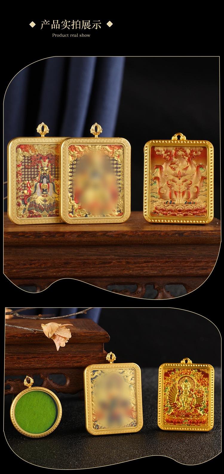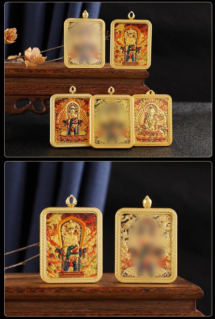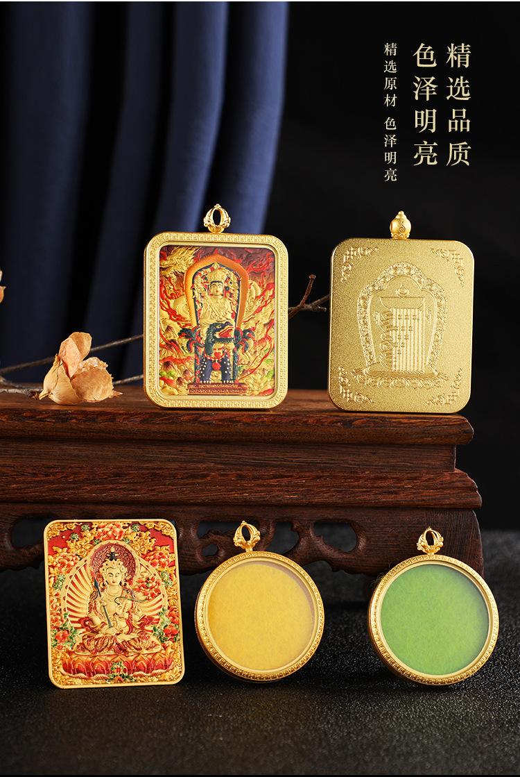 Latón Manjusri Quinto Maestro Doble Cara Tridimensional Colgante Retrato Thangka Estilo Tibetano Marea Nacional Pintado Collar Colgante Montaña Wutai