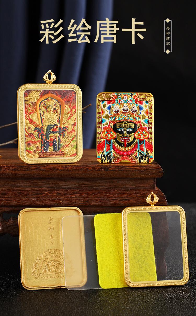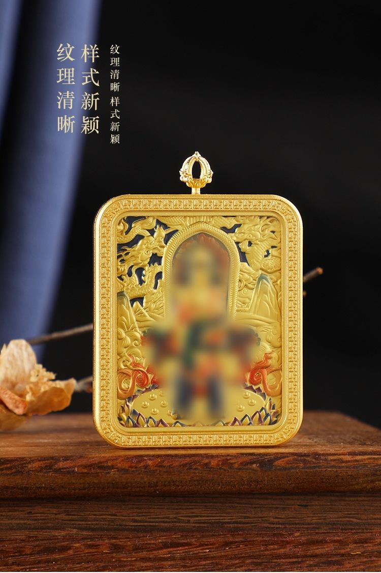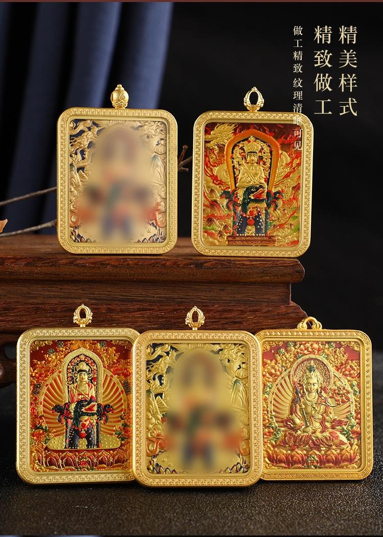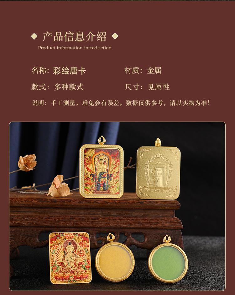 Latón Manjusri Quinto Maestro Doble Cara Tridimensional Colgante Retrato Thangka Estilo Tibetano Marea Nacional Pintado Collar Colgante Montaña Wutai