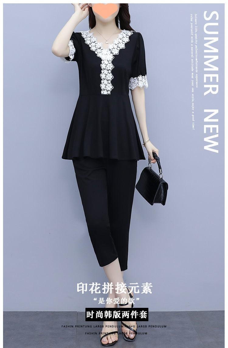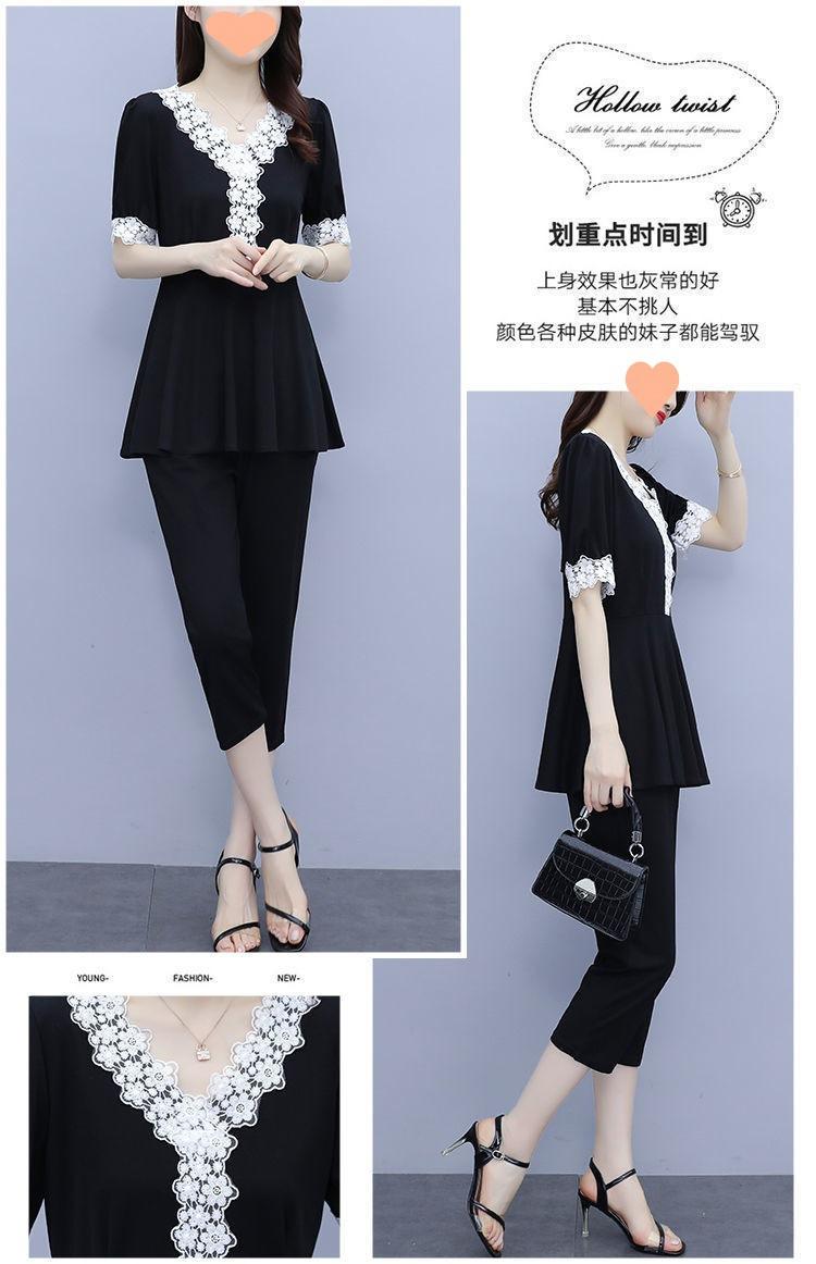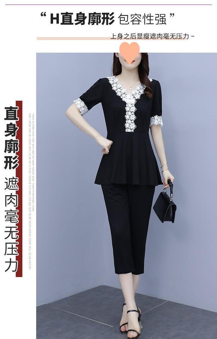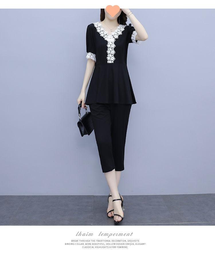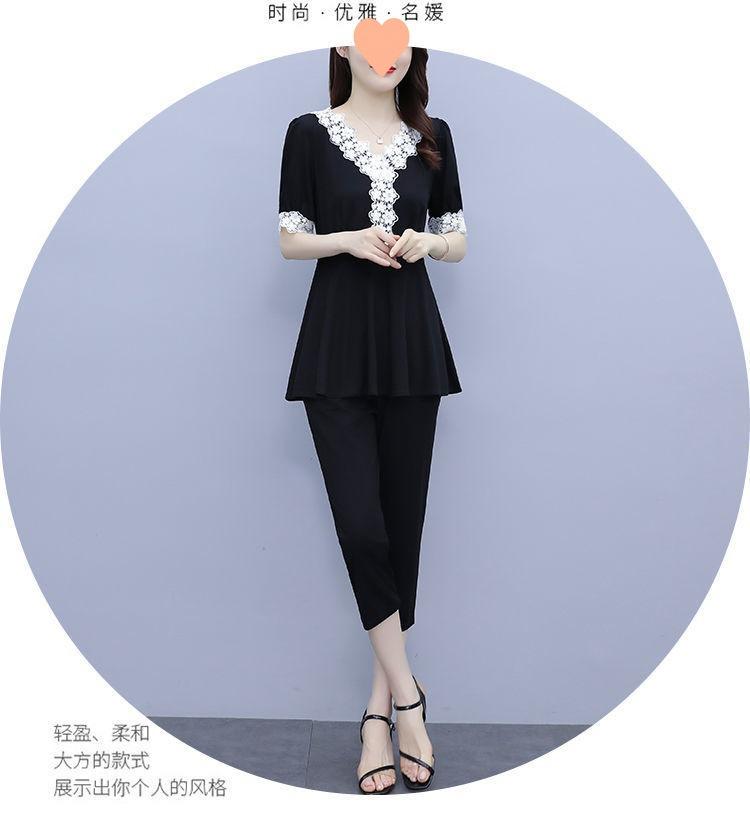 Conjunto de dos piezas de abrigo de encaje con temperamento de verano para mujer, traje de chica gordita de talla grande a la moda de 538 #200 kg