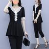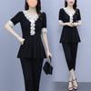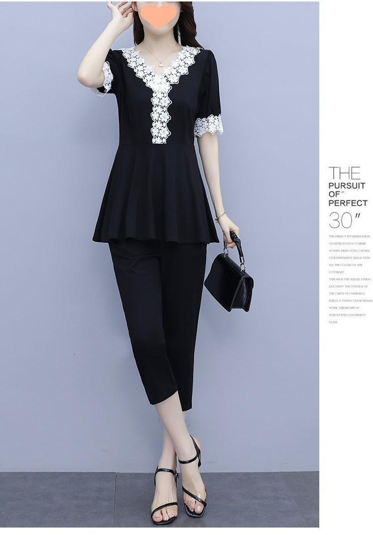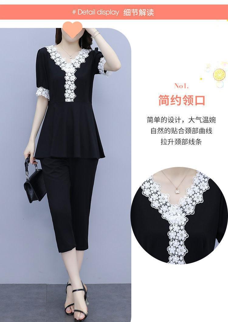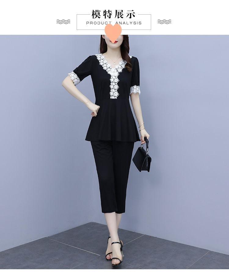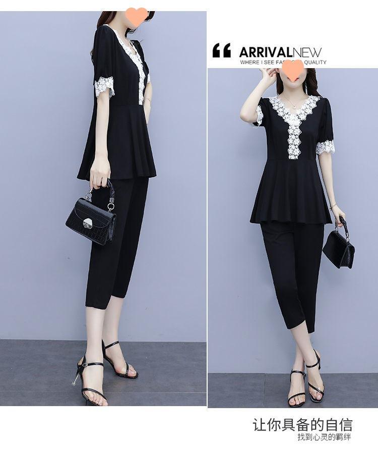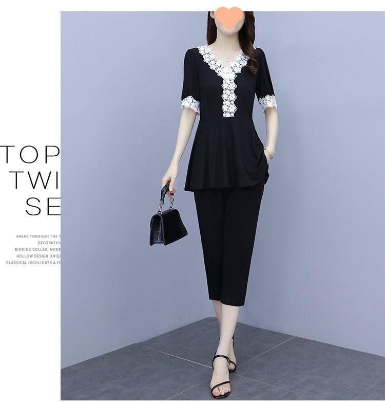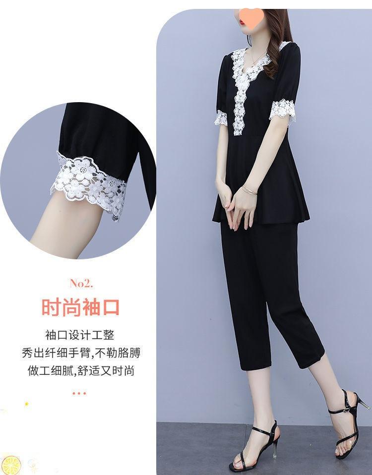 Conjunto de dos piezas de abrigo de encaje con temperamento de verano para mujer, traje de chica gordita de talla grande a la moda de 538 #200 kg