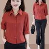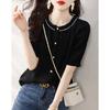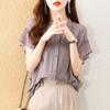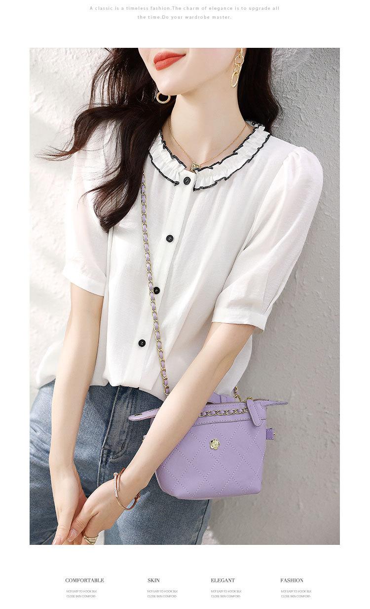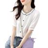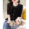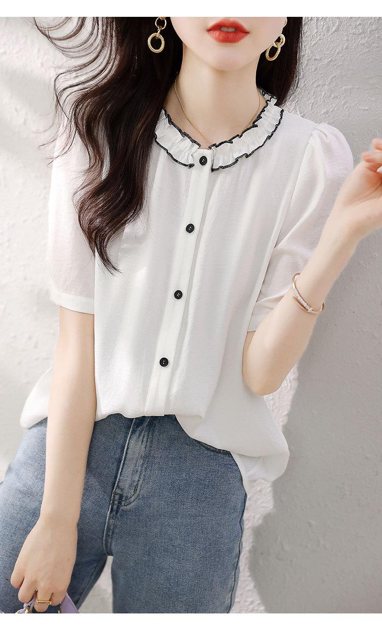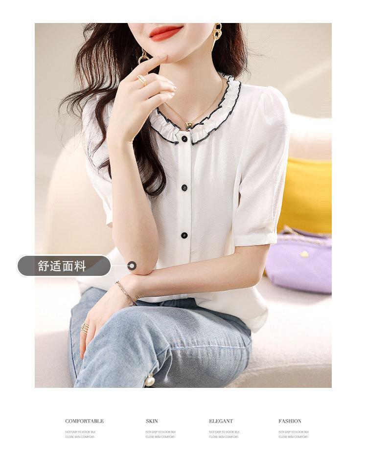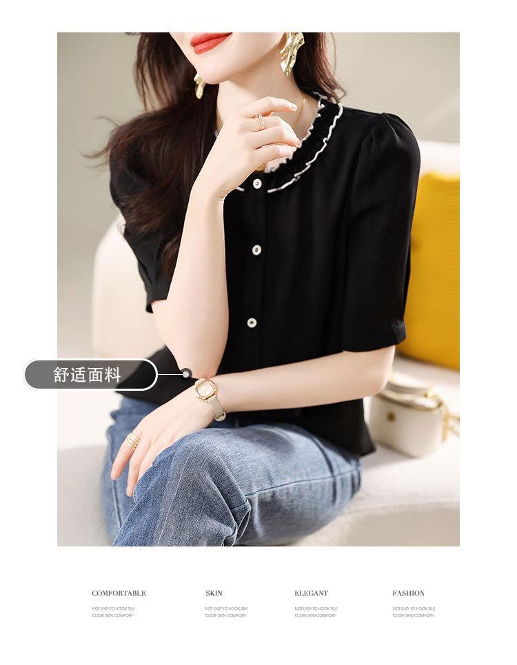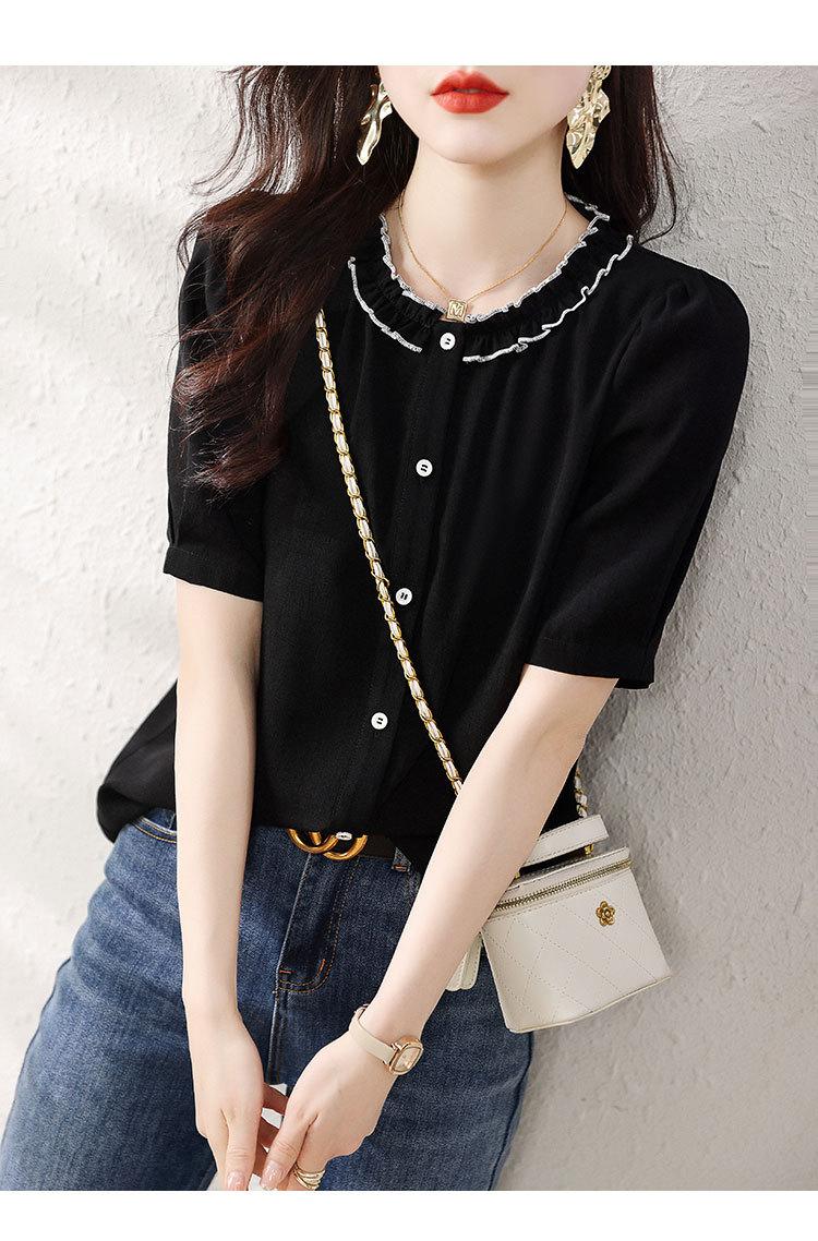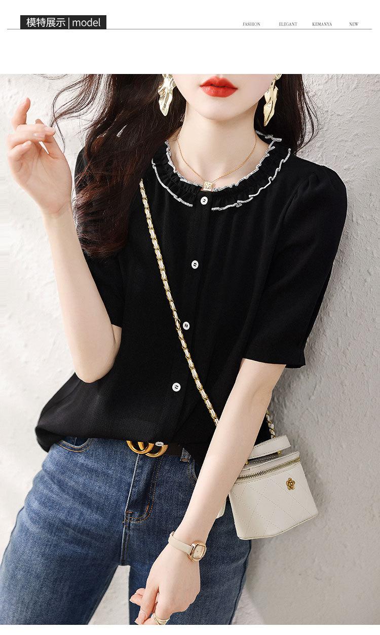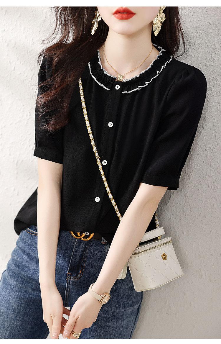 2025 Nuevo Estilo de Verano Top Cómodo y Versátil Look Adelgazante Cuello de Encaje Camisa de Manga Corta Camisa Elegante para Mujer
