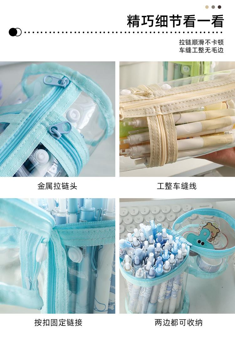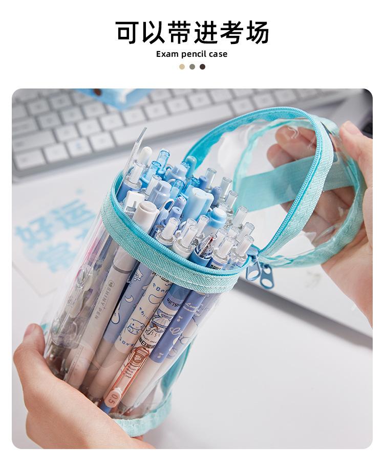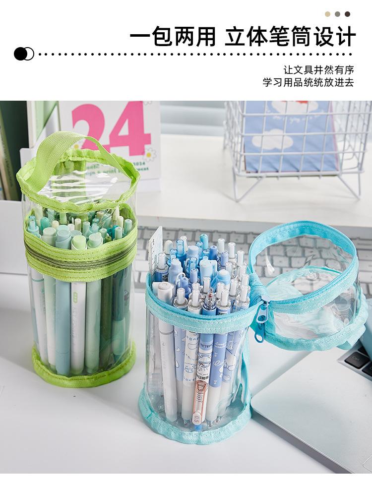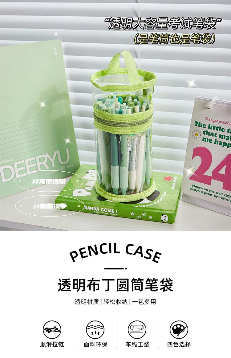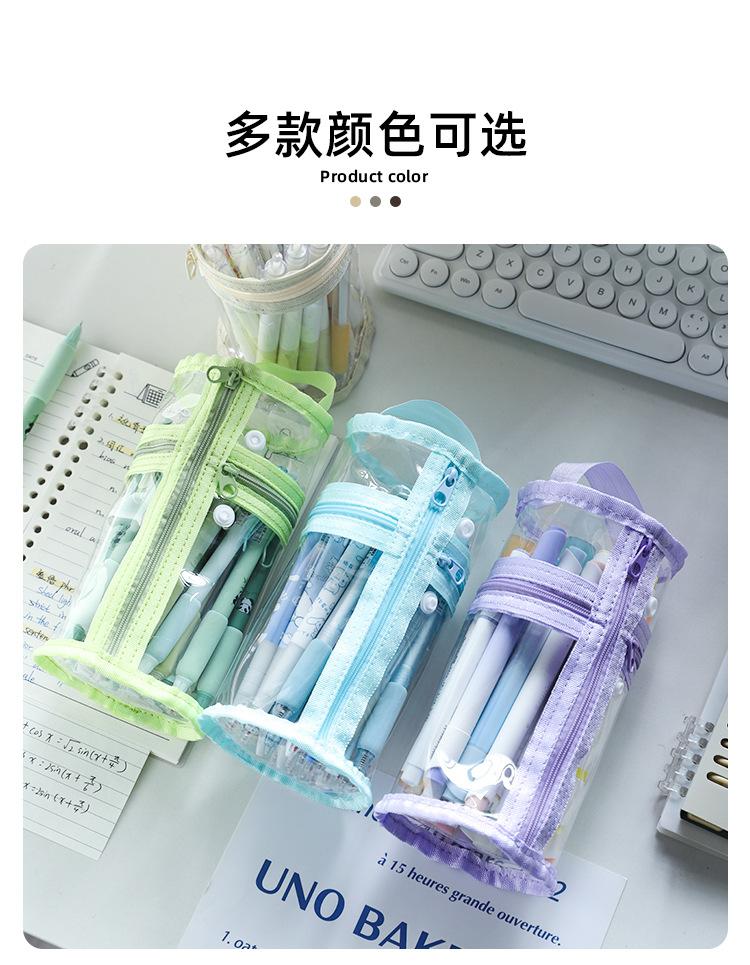 Estuche transparente para lápices, estuche especial de gran capacidad para estudiantes, estuche cilíndrico de examen de alto valor de color, estuche de papelería para mujer.