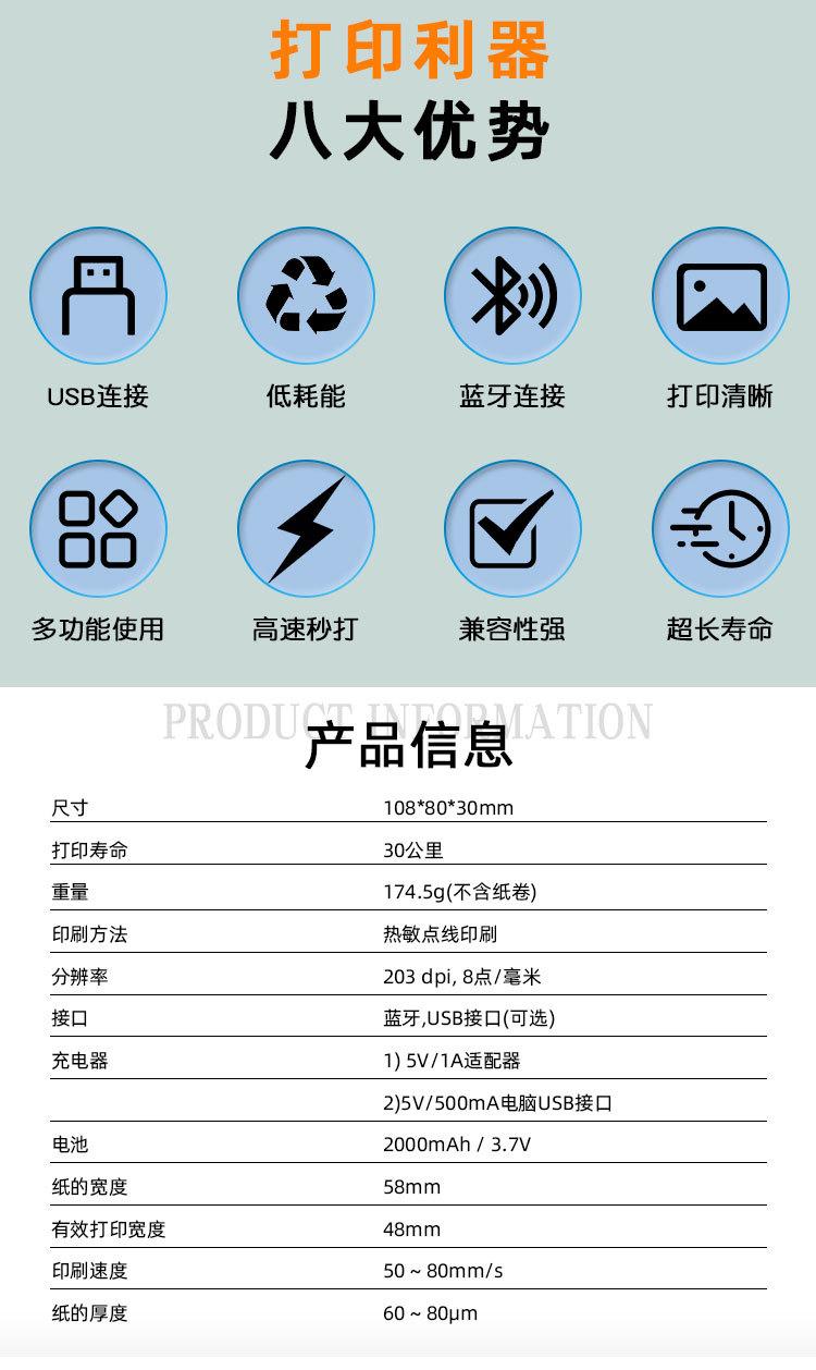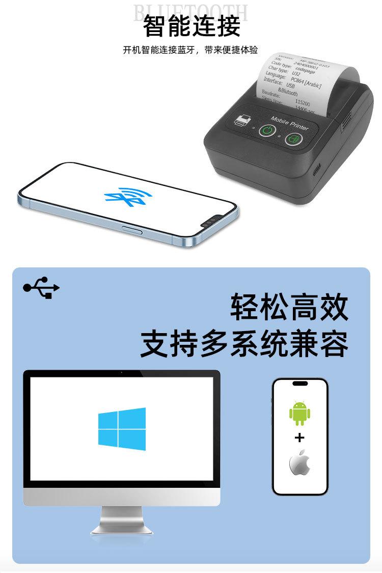 ¡Diga adiós a las impresoras matriciales tradicionales, ahora le proporcionamos impresoras portátiles más eficientes! Esta mini impresora térmica Bluetooth MP-58N combina ligereza, excelente conectividad y larga duración de la batería. La impresión de datos portátil la hace utilizada con éxito en diversos campos. La impresora puede ser alimentada por una batería recargable. El diseño compacto le permite guardarla en su bolso para usarla fácilmente en cualquier momento y lugar.