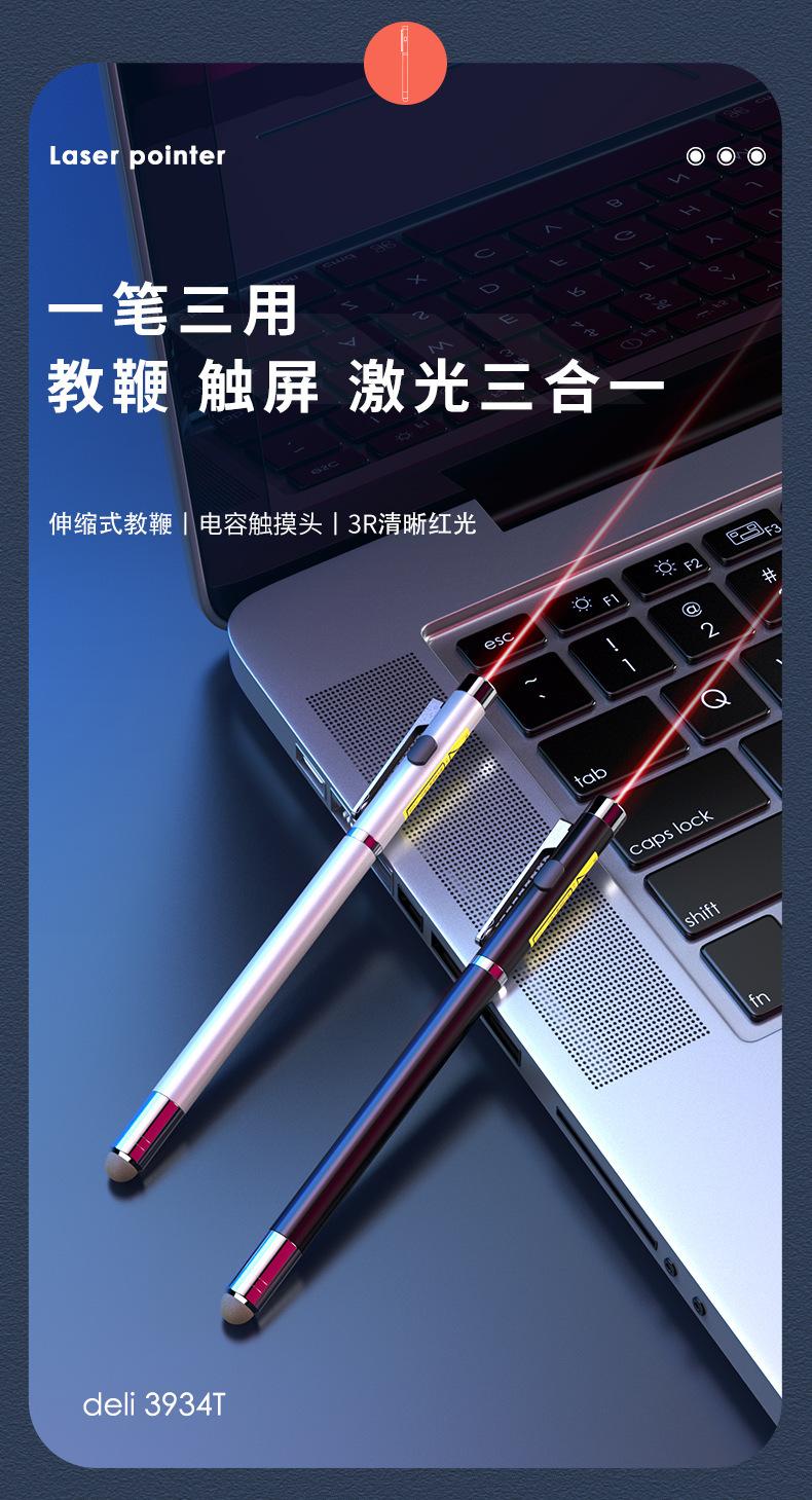 Deli 3934t Puntero Láser Puntero Telescópico Láser Rojo Pluma Telescópica para Demostración con Punta Capacitiva