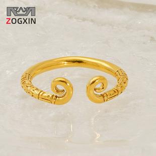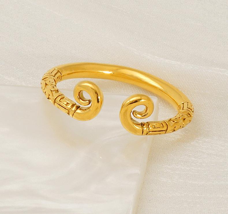 Anillo de acero inoxidable transfronterizo con personalidad de moda europea y americana, estilo retro, combinación de acero de titanio, anillo móvil de color acero dorado de 18 quilates