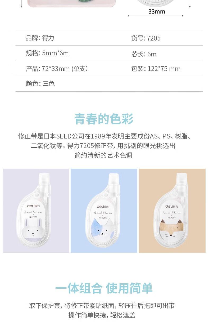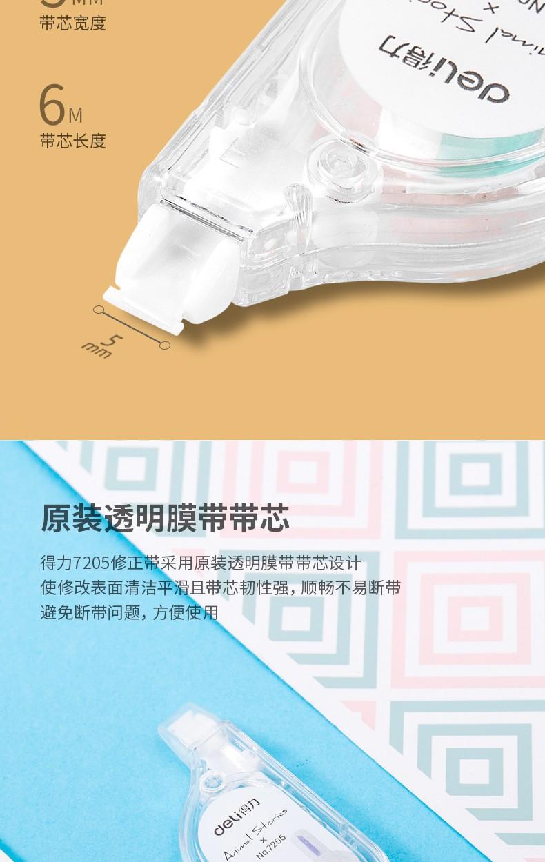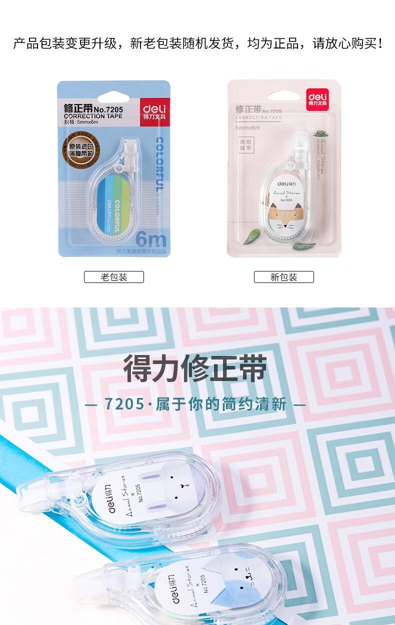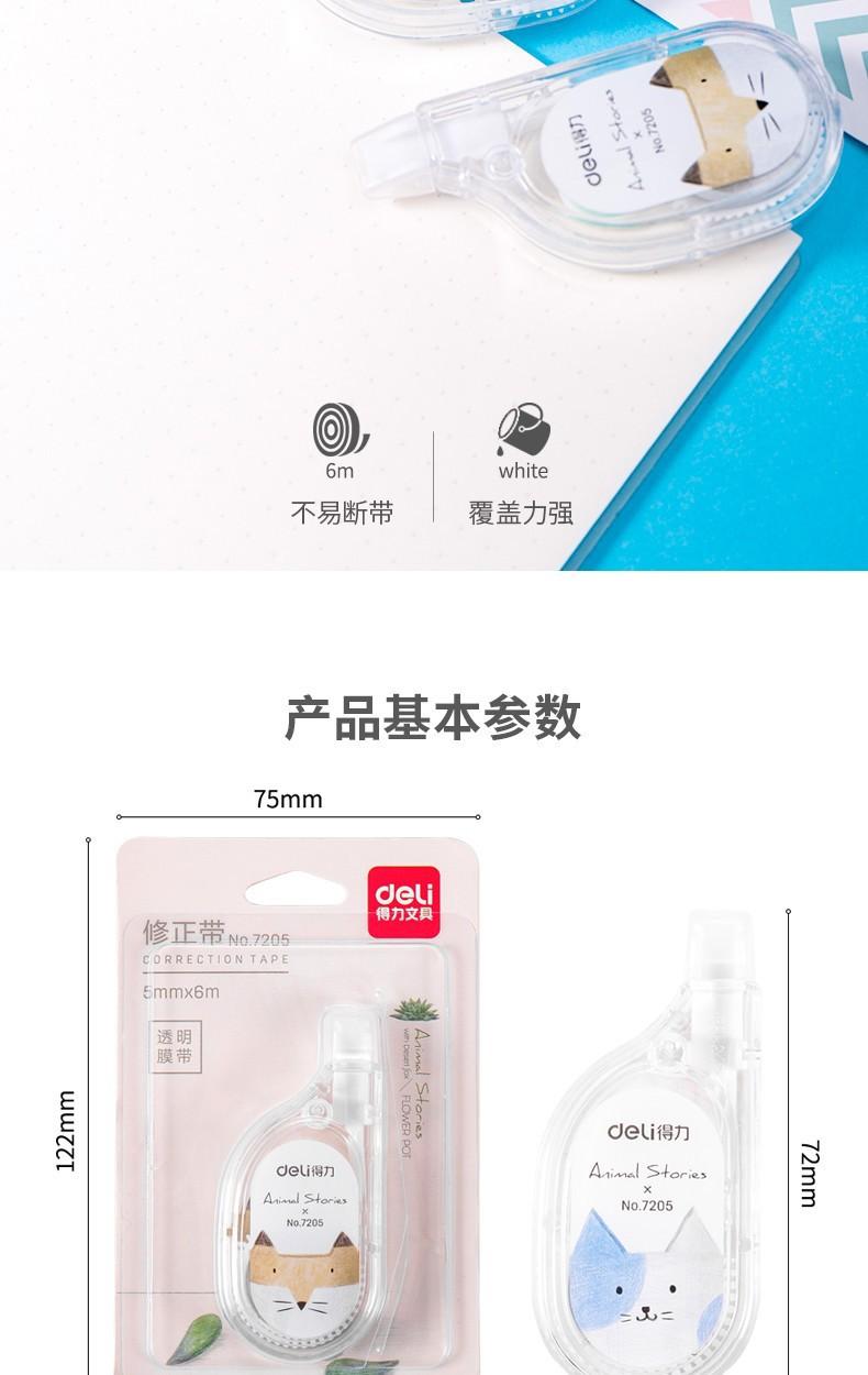 Cinta correctora Deli 7205 para estudiantes, de alta calidad, bonita, transparente, duradera y suave, ideal para niñas.