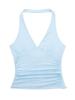 Chaqueta corta con cuello colgante y estampado de serigrafía azul para mujer, nueva primavera y verano de 2024, estilo europeo y americano transfronterizo