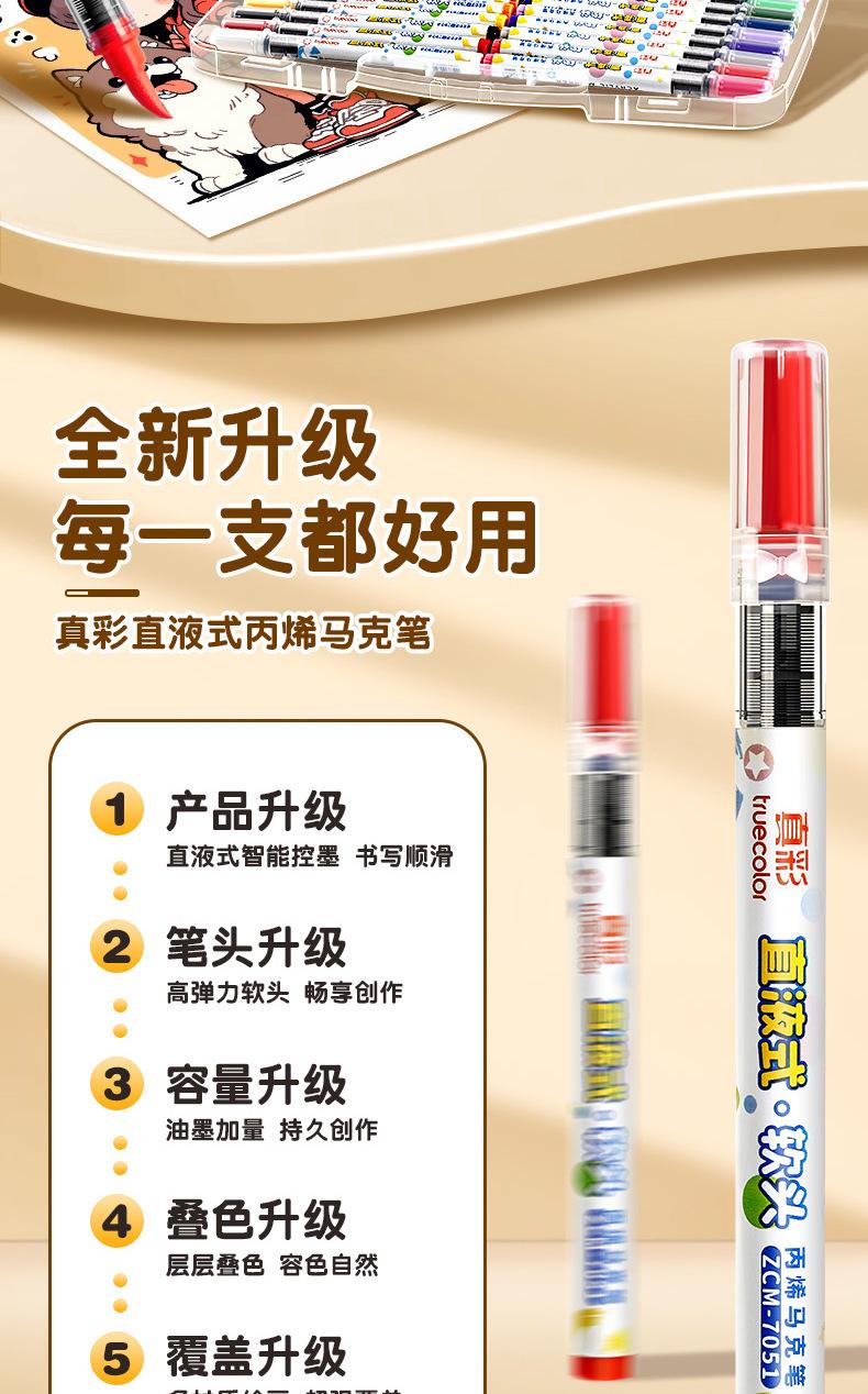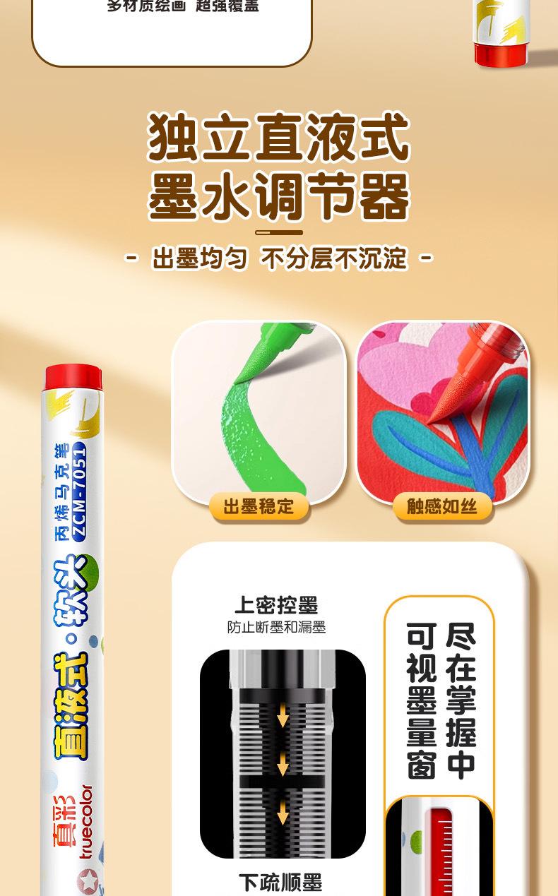 Marcador Acrílico Líquido Directo de Color Verdadero Estudiantes de Primaria DIY Arte Creativo de Grafiti Especial Pintado a Mano Pincel de Color de Cabeza Suave